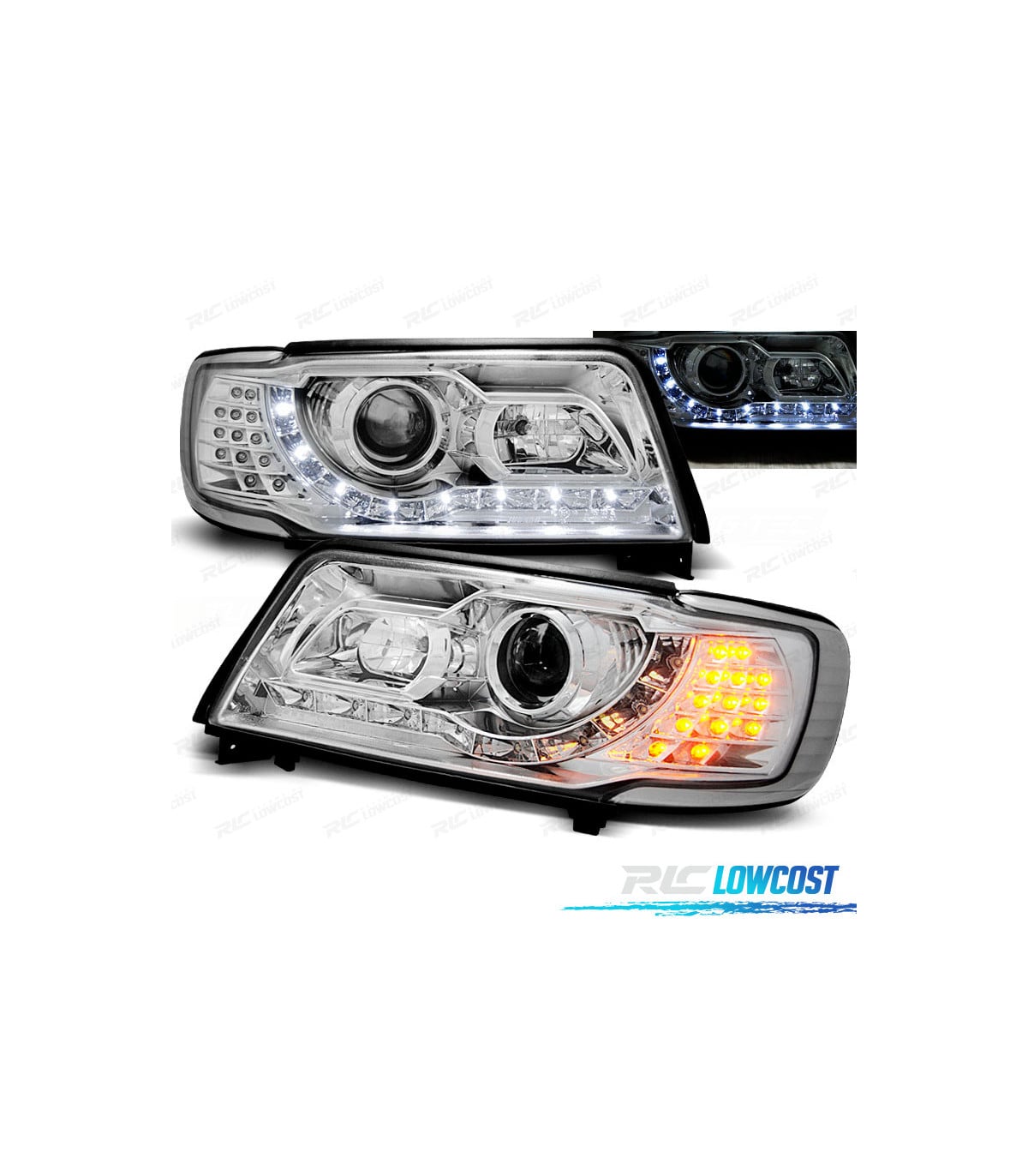 FAROS AUDI 100 90-94 DAYLIGHT CON INTERMITENTE LED CROMADOS