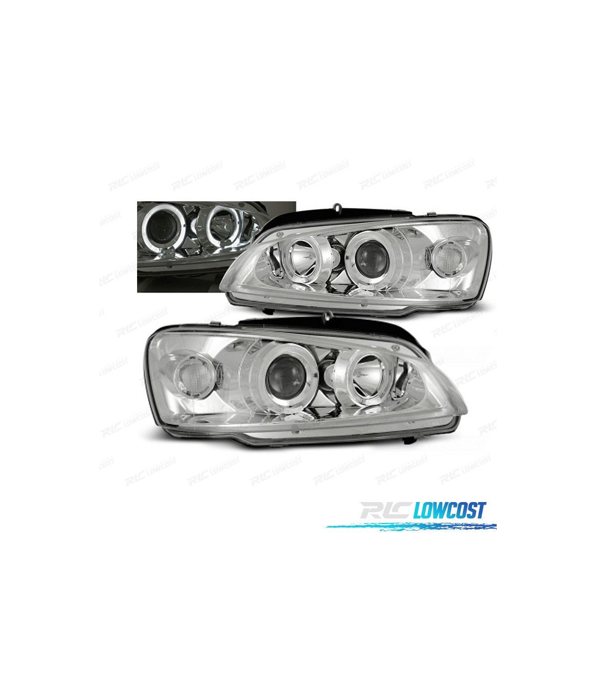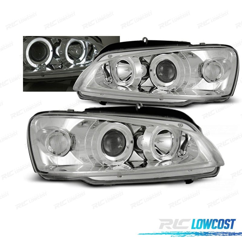 FAROS PEUGEOT 106 96-03 OJOS ANGEL FONDO CROMO
