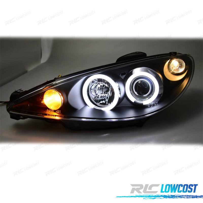 FAROS PEUGEOT 206 02-08 OJOS ANGEL FONDO NEGRO H7 OEM