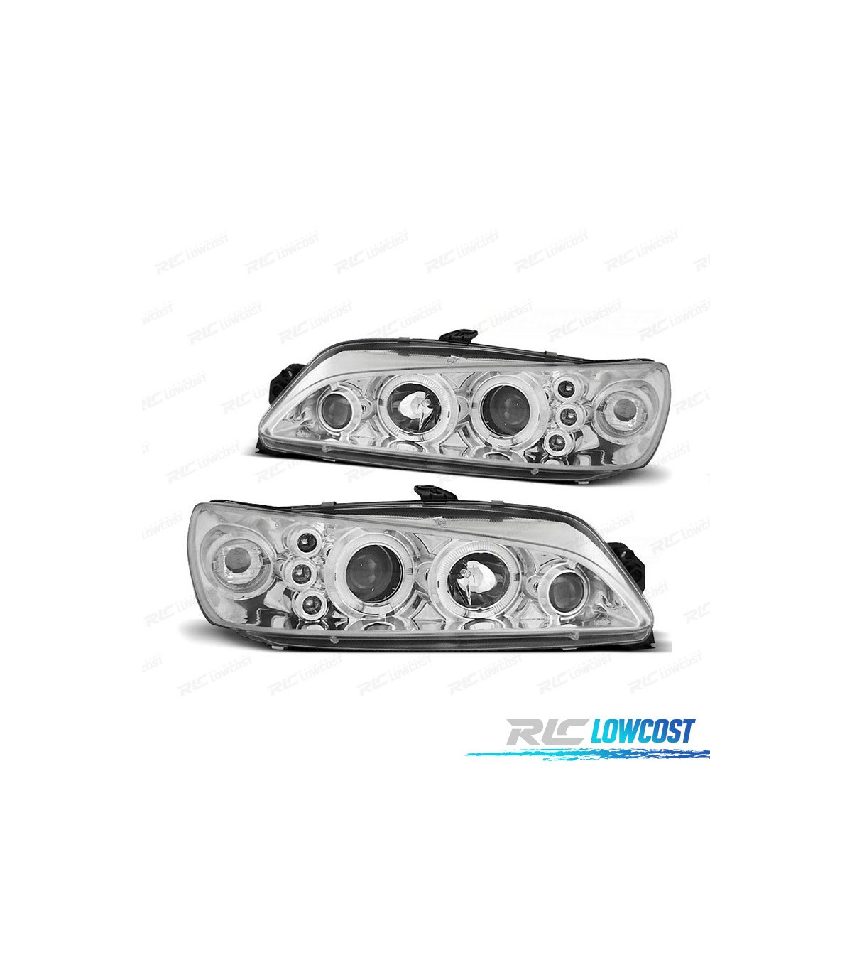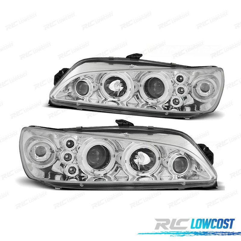FAROS PEUGEOT 306 97-01 OJOS ANGEL FONDO CROMO