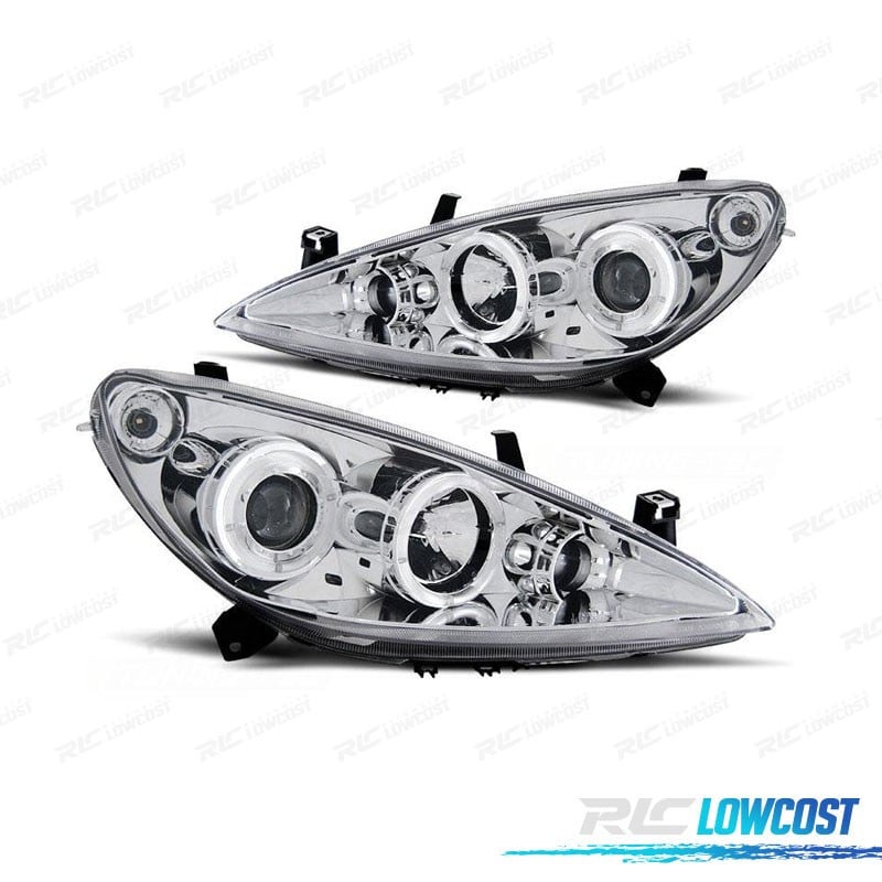FAROS PEUGEOT 307 01-05 OJOS ANGEL FONDO CROMO