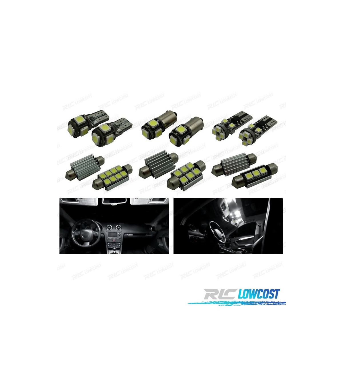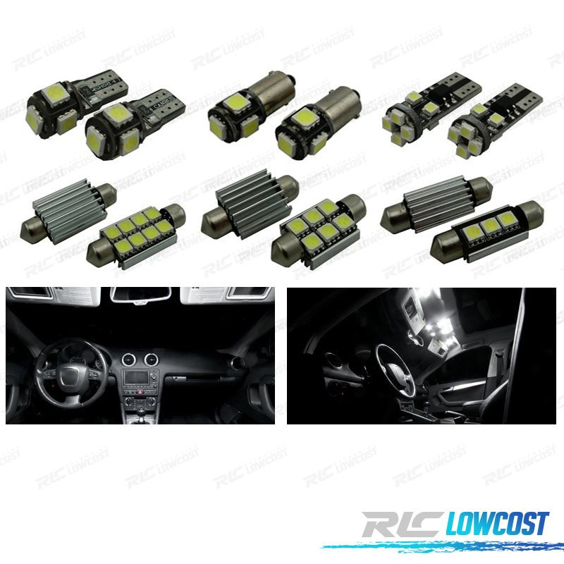 Bombillas led de Alta calidad, Súper brillante. Instalación sencilla: no es necesario ningún tipo de modificación, simplemente sustituir las bombillas led por las que trae el vehículo de origen. Disponen de sistema Can bus: no se encenderá aviso de luz fundida en cuadro. Diseñadas para una perfecta resistencia al calor. Color: Luz blanca led Larga duración: hasta 50,000 horas *Si las bombillas no funcionan, por favor gire 180 grados para que funcionen, tienen posición. El paquete incluye: Bombillas cúpula frontal-4 unidades Bombillas Cúpula trasera-4 unidades Bombillas parasol-2 unidades Bombillas plafón central-2 unidades Bombillas guantera-1 unidades Bombillas puertas-8 unidades Bombillas reposapiés-2 unidades Bombillas matrícula-2 unidades Bombillas reserva extra-1 unidades (Cada bombilla está empaquetada y etiquetada por separado, usted sabrá donde colocar cada bombilla)Estos no son productos originales de la marca AUDI. Bombillas cúpula frontal-4 unidades Bombillas Cúpula trasera-4 unidades Bombillas parasol-2 unidades Bombillas plafón central-2 unidades Bombillas guantera-1 unidades Bombillas puertas-8 unidades Bombillas reposapiés-2 unidades Bombillas matrícula-2 unidades Bombillas reserva extra-1 unidades (Cada bombilla está empaquetada y etiquetada por separado, usted sabrá donde colocar cada bombilla)