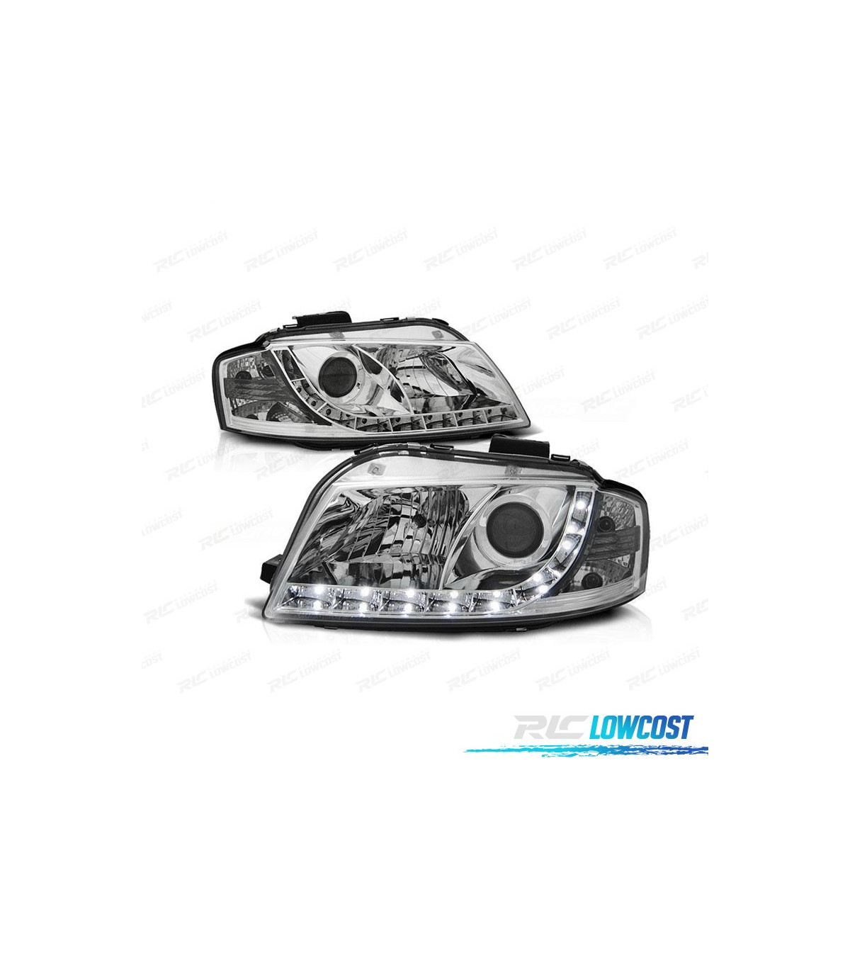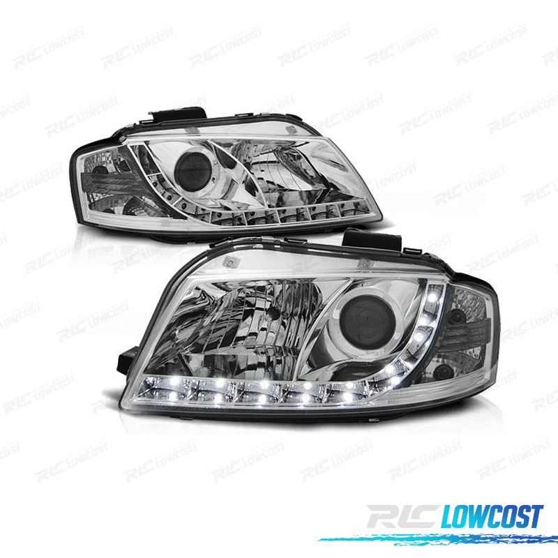 FAROS AUDI A3 8P 03-08 LUZ DIURNA LED FONDO CROMO