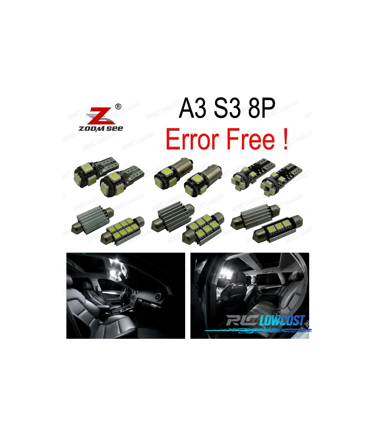 KIT 16 BOMBILLAS LED INTERIOR AUDI A3 S3 8 P 2006 -2013