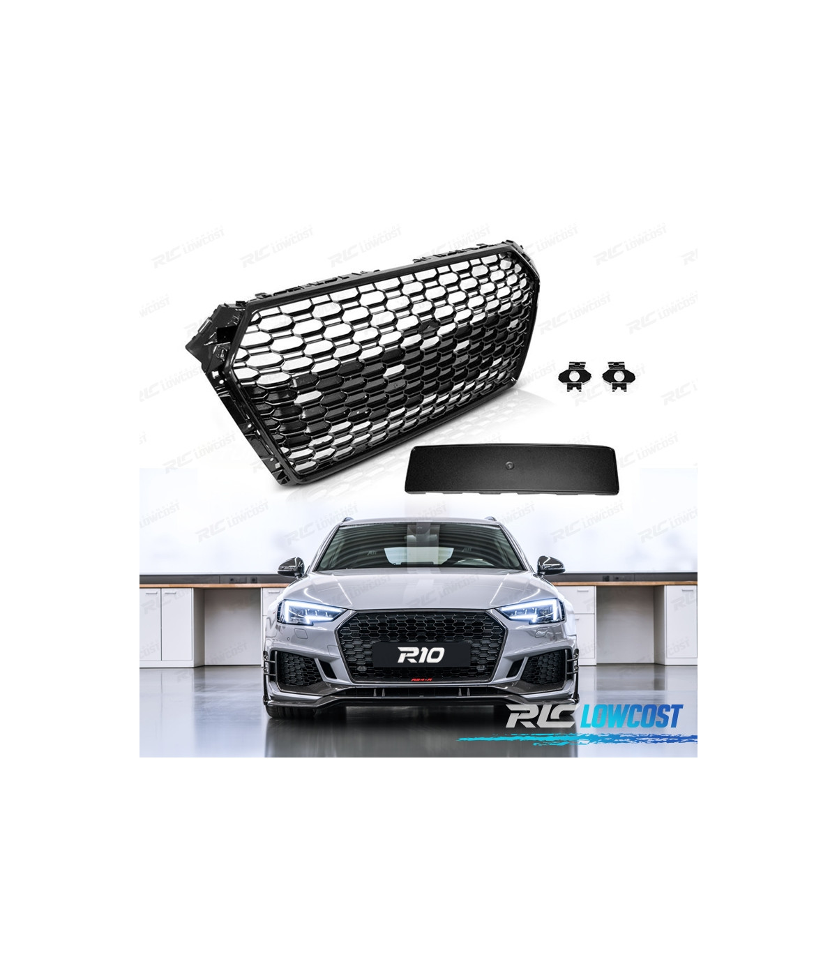 PARRILLA AUDI A4 B9 15-19 PDC LOOK RS4 NEGRO BRILLO