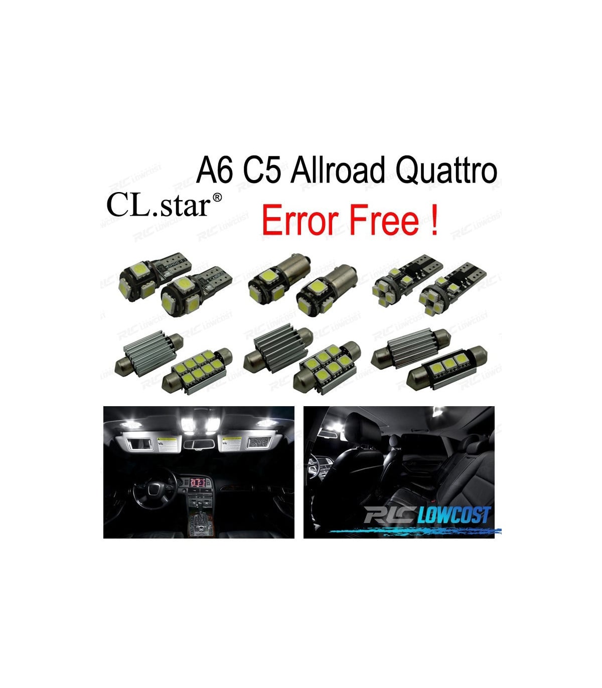 Bombillas led de Alta calidad, Súper brillante. Instalación sencilla: no es necesario ningún tipo de modificación, simplemente sustituir las bombillas led por las que trae el vehículo de origen. Disponen de sistema Can bus: no se encenderá aviso de luz fundida en cuadro. Diseñadas para una perfecta resistencia al calor. Color: Luz blanca led Larga duración: hasta 50,000 horas *Si las bombillas no funcionan, por favor gire 180 grados para que funcionen, tienen posición. El paquete incluye: Bombillas cúpula frontal-4 unidadesBombillas Cúpula trasera-6 unidadesBombillas parasol-2 unidadesBombillas plafón central-3 unidadesBombillas guantera-1 unidadesBombillas puertas-4 unidadesBombillas reposapiés-6 unidadesBombillas matrícula-2 unidadesBombillas reserva extra-1 unidades(Cada bombilla está empaquetada y etiquetada por separado, usted sabrá donde colocar cada bombilla)Estos no son productos originales de la marca AUDI.Bombillas cúpula frontal-4 unidadesBombillas Cúpula trasera-6 unidadesBombillas parasol-2 unidadesBombillas plafón central-3 unidadesBombillas guantera-1 unidadesBombillas puertas-4 unidadesBombillas reposapiés-6 unidadesBombillas matrícula-2 unidadesBombillas reserva extra-1 unidades(Cada bombilla está empaquetada y etiquetada por separado, usted sabrá donde colocar cada bombilla)