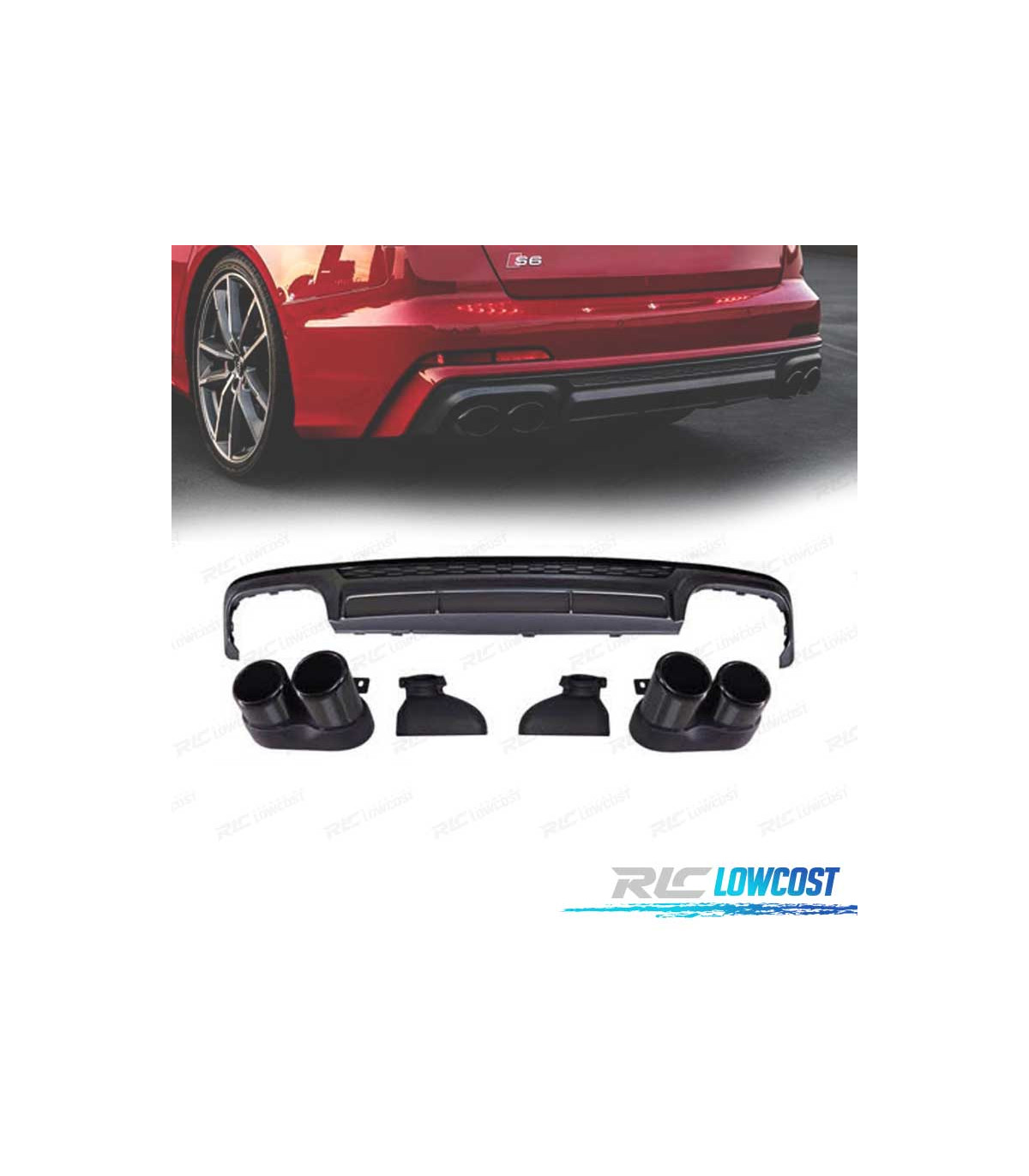 DIFUSOR AUDI A6 S LINE 18-22 LOOK S6 + COLAS ESCAPE NEGRO