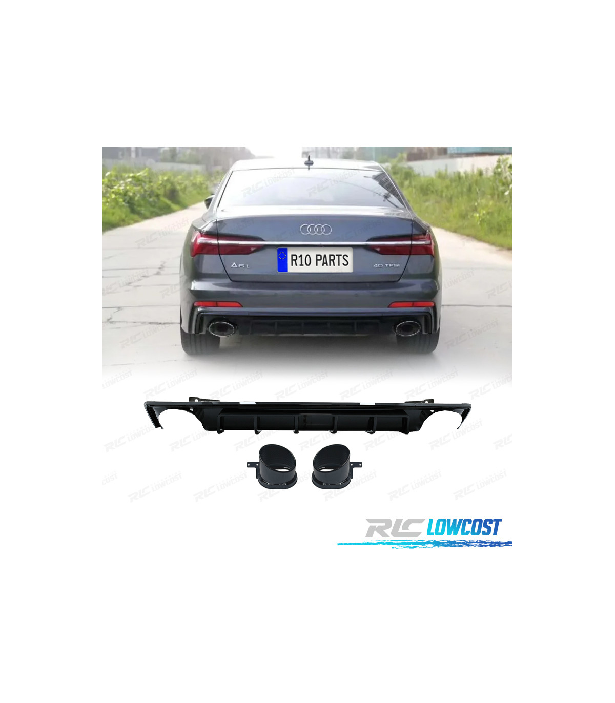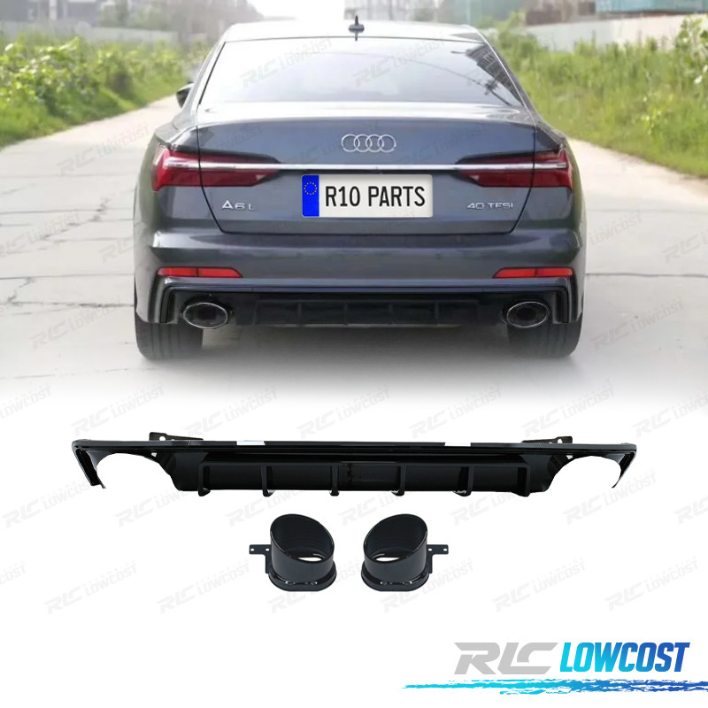 DIFUSOR AUDI A6 18-22 LOOK RS6 NEGRO BRILLO + COLAS DE ESCAPE