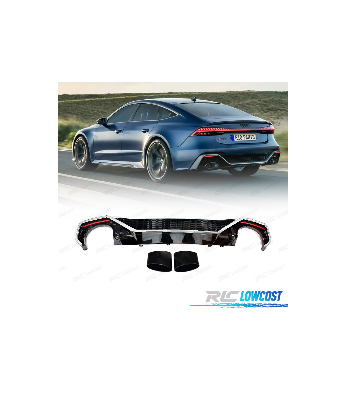 DIFUSOR AUDI A7 19-23 LOOK RS7 NEGRO BRILLO Y CROMO