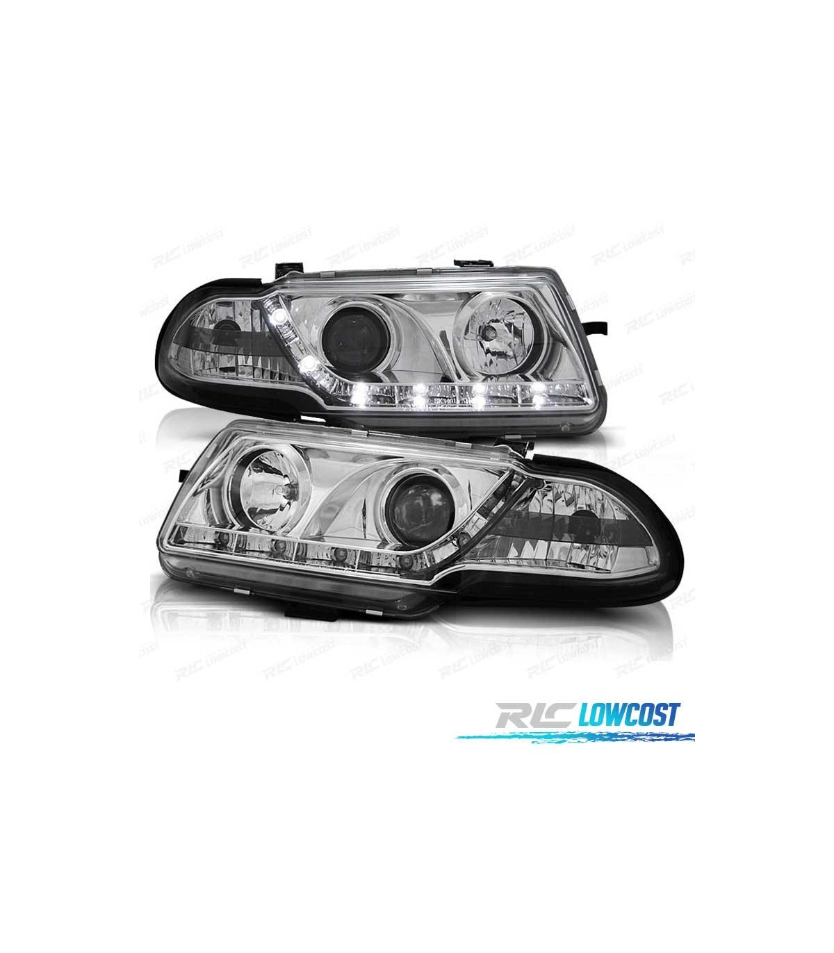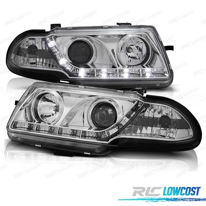 FAROS OPEL ASTRA F 94-98 LUZ DIURNA LED FONDO CROMO
