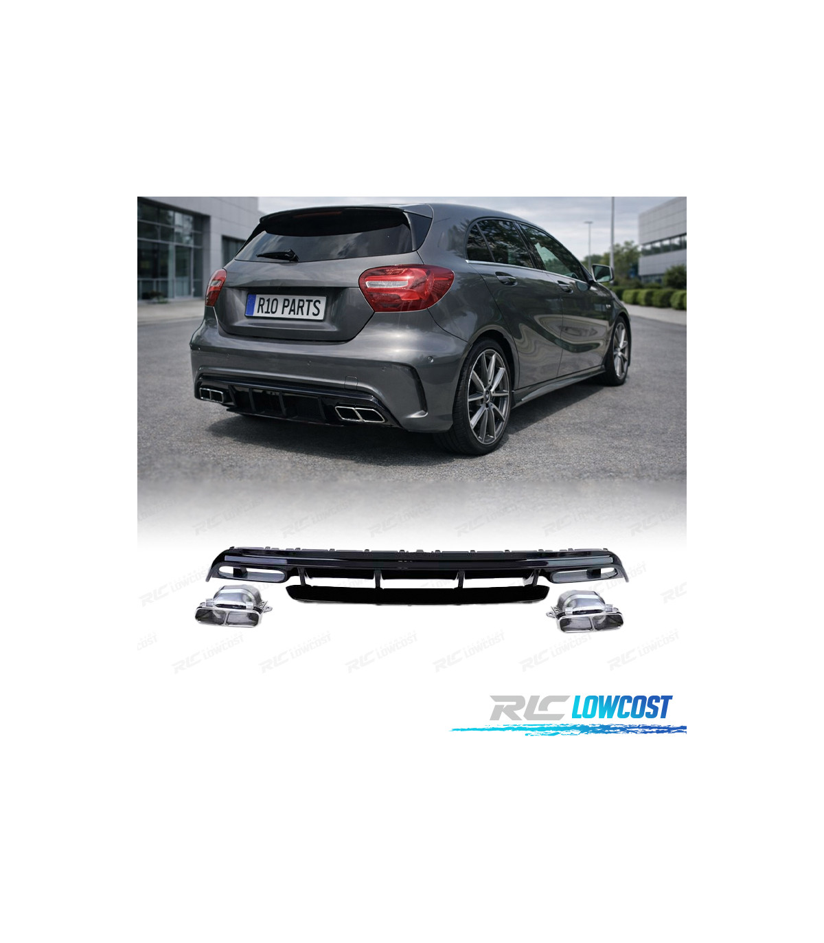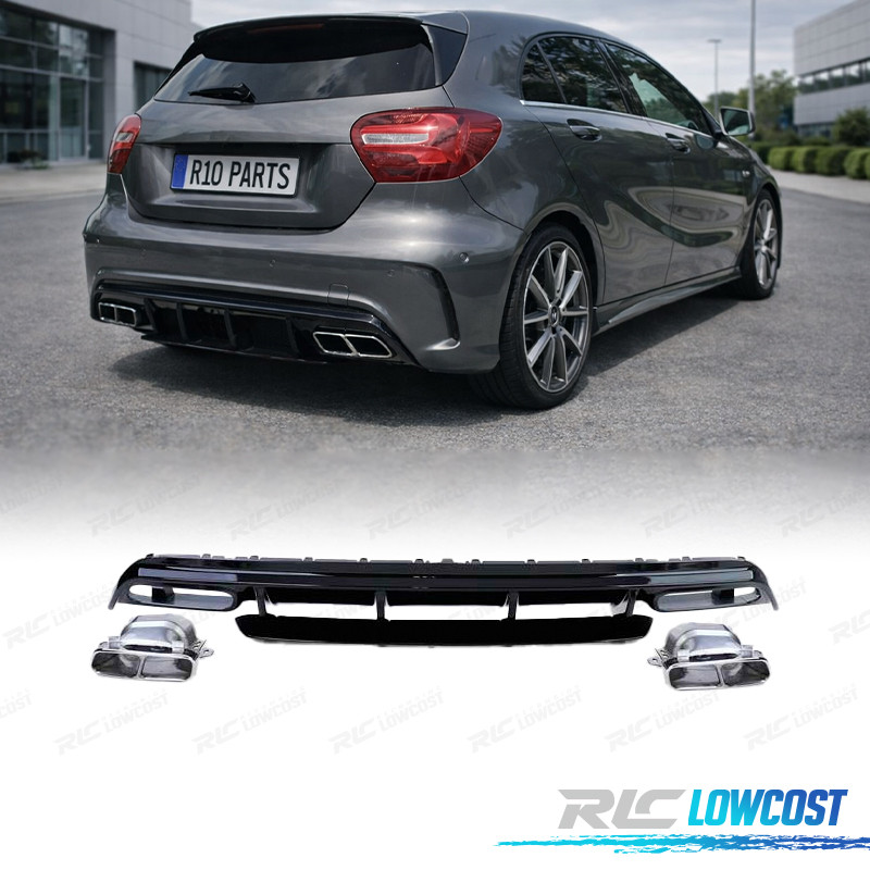 DIFUSOR MERCEDES CLASE A W176 12-18 LOOK A45 AMG NEGRO BRILLO + COLAS ESCAPE