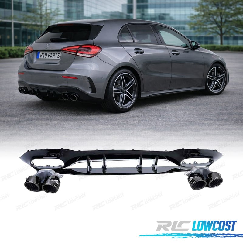 DIFUSOR MERCEDES CLASE A W177 18- A45 LOOK AMG NEGRO BRILLO + COLAS ESCAPE