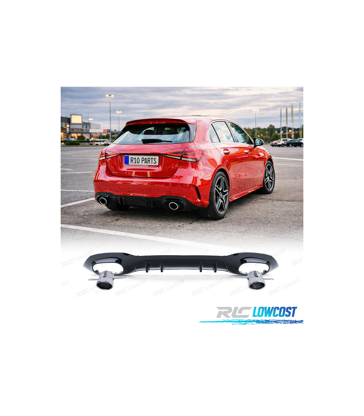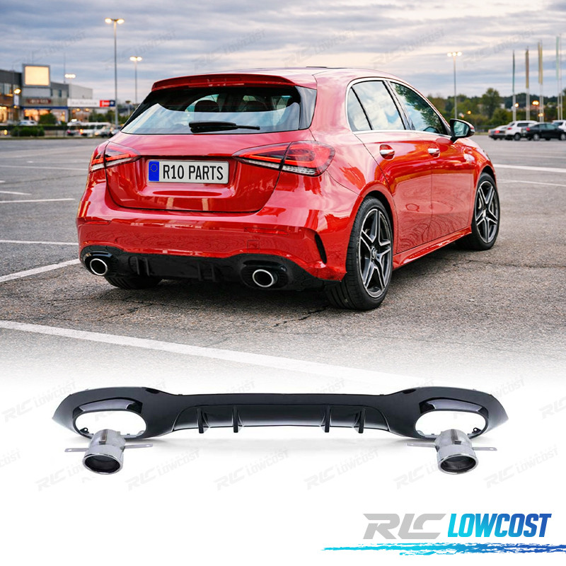 DIFUSOR MERCEDES CLASE A W177 18- A35 LOOK AMG NEGRO BRILLO + COLAS ESCAPE