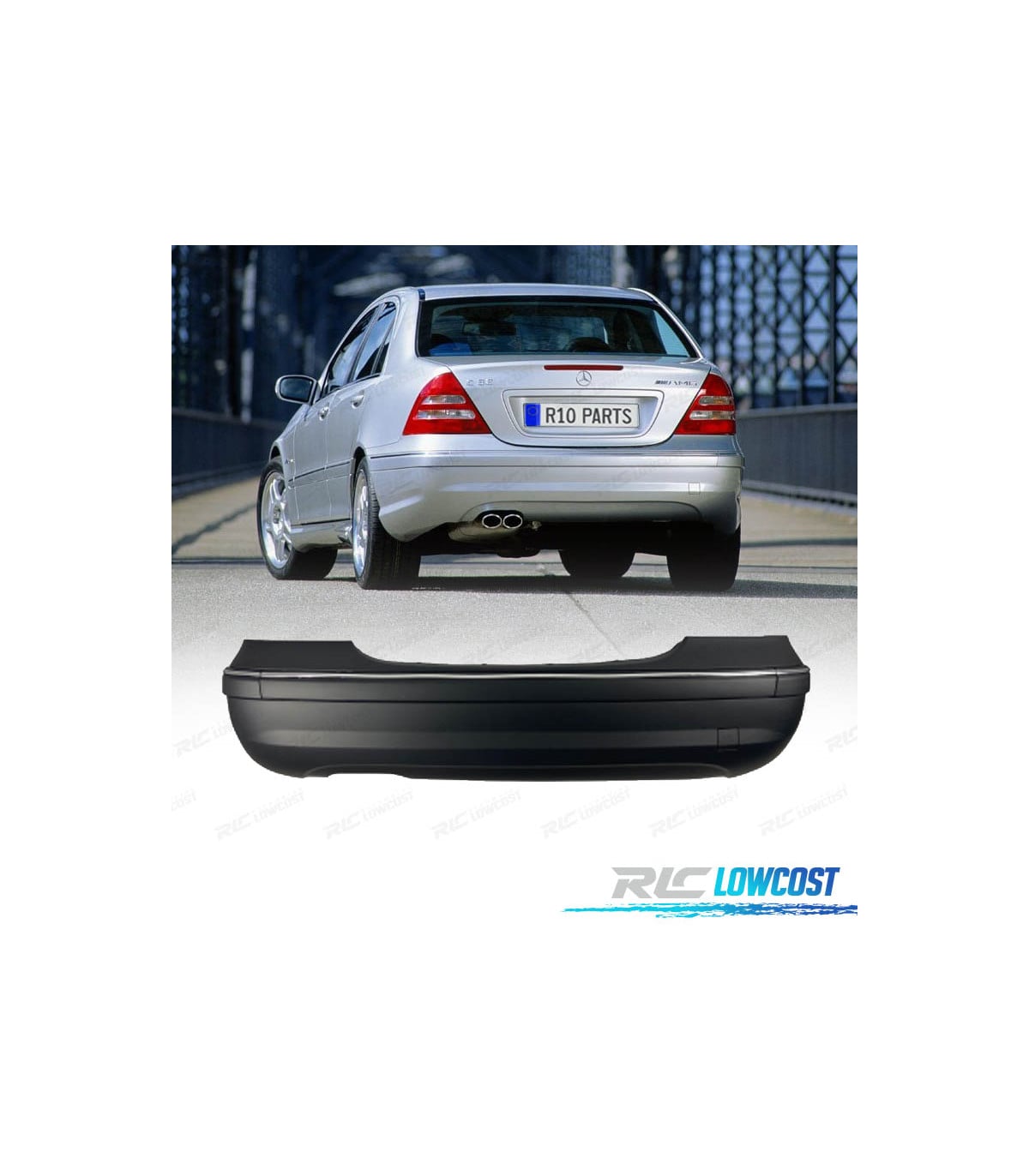 PARAGOLPES TRASERO MERCEDES CLASE C W203 SEDAN 01-07 LOOK C32 AMG DOBLE SALIDA IZQ