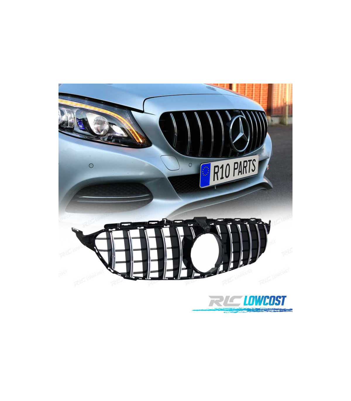PARRILLA MERCEDES W205 14-18 LOOK AMG GT CROMO NEGRO