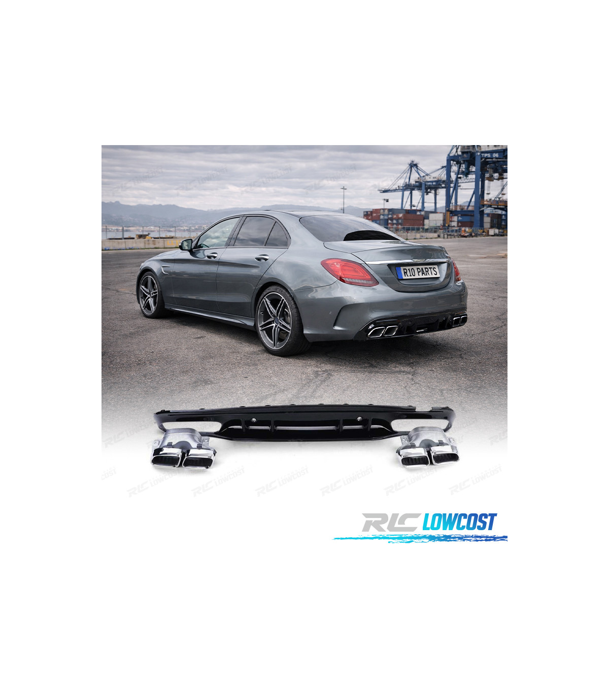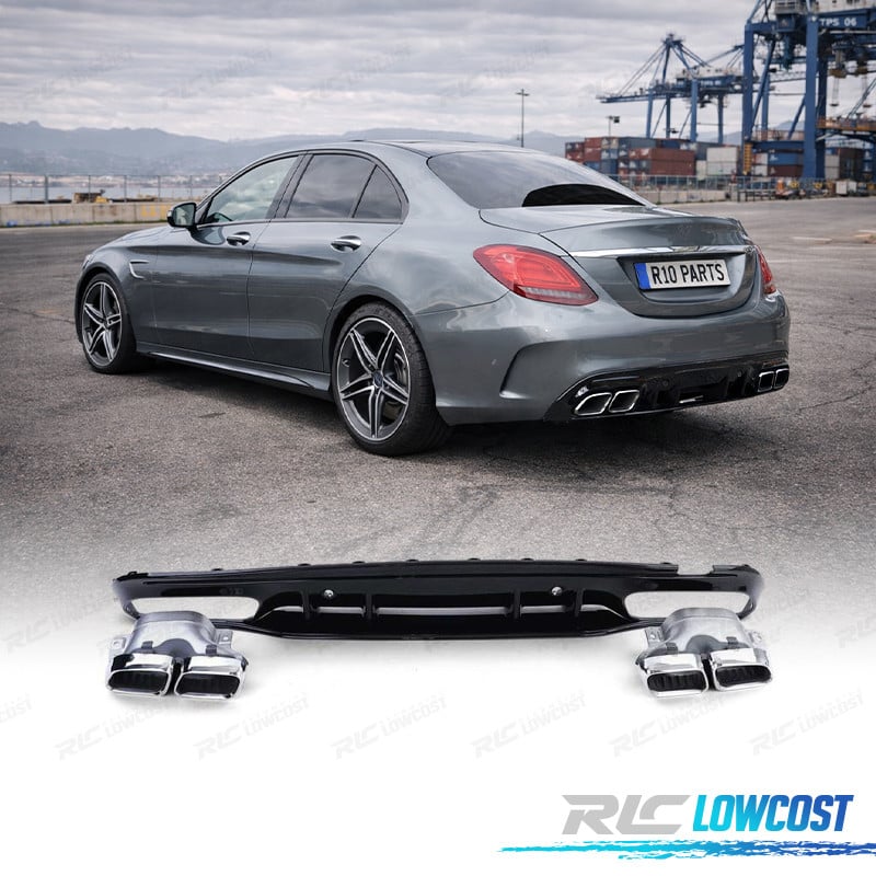 DIFUSOR MERCEDES CLASE C W205 SEDAN 18-21 NEGRO BRILLANTE + COLAS ESCAPE LOOK AMG C63