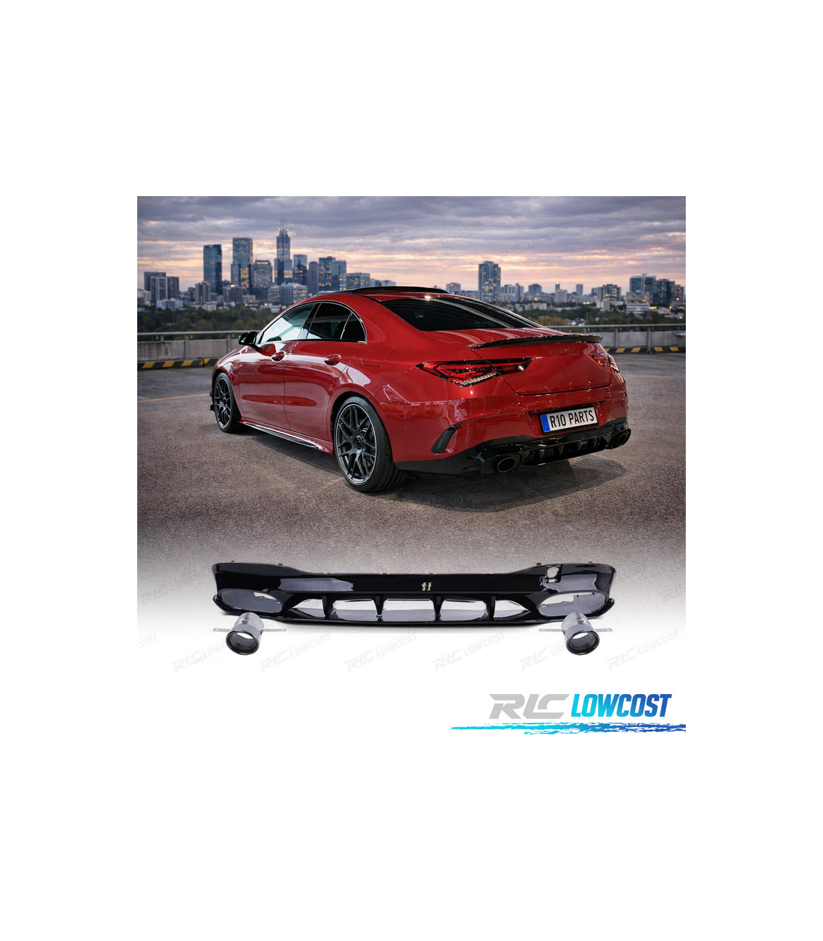 DIFUSOR MERCEDES CLA C118 19- AMG NEGRO BRILLO + COLAS ESCAPE