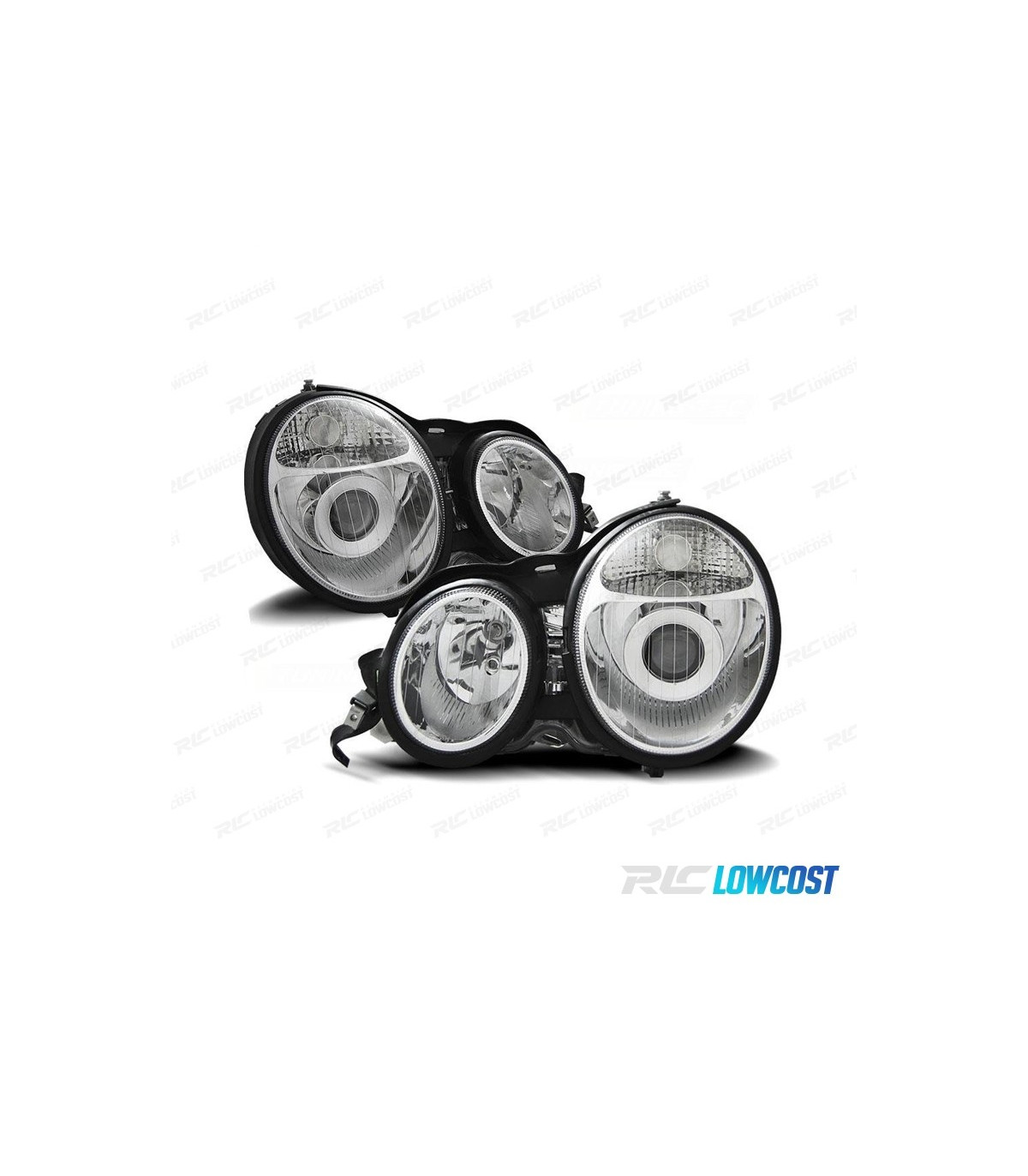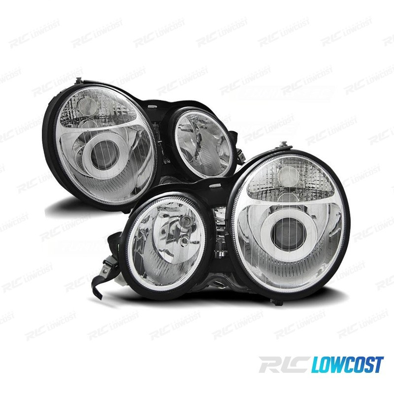 FAROS MERCEDES CLASE E W210 95-99 FONDO CROMO