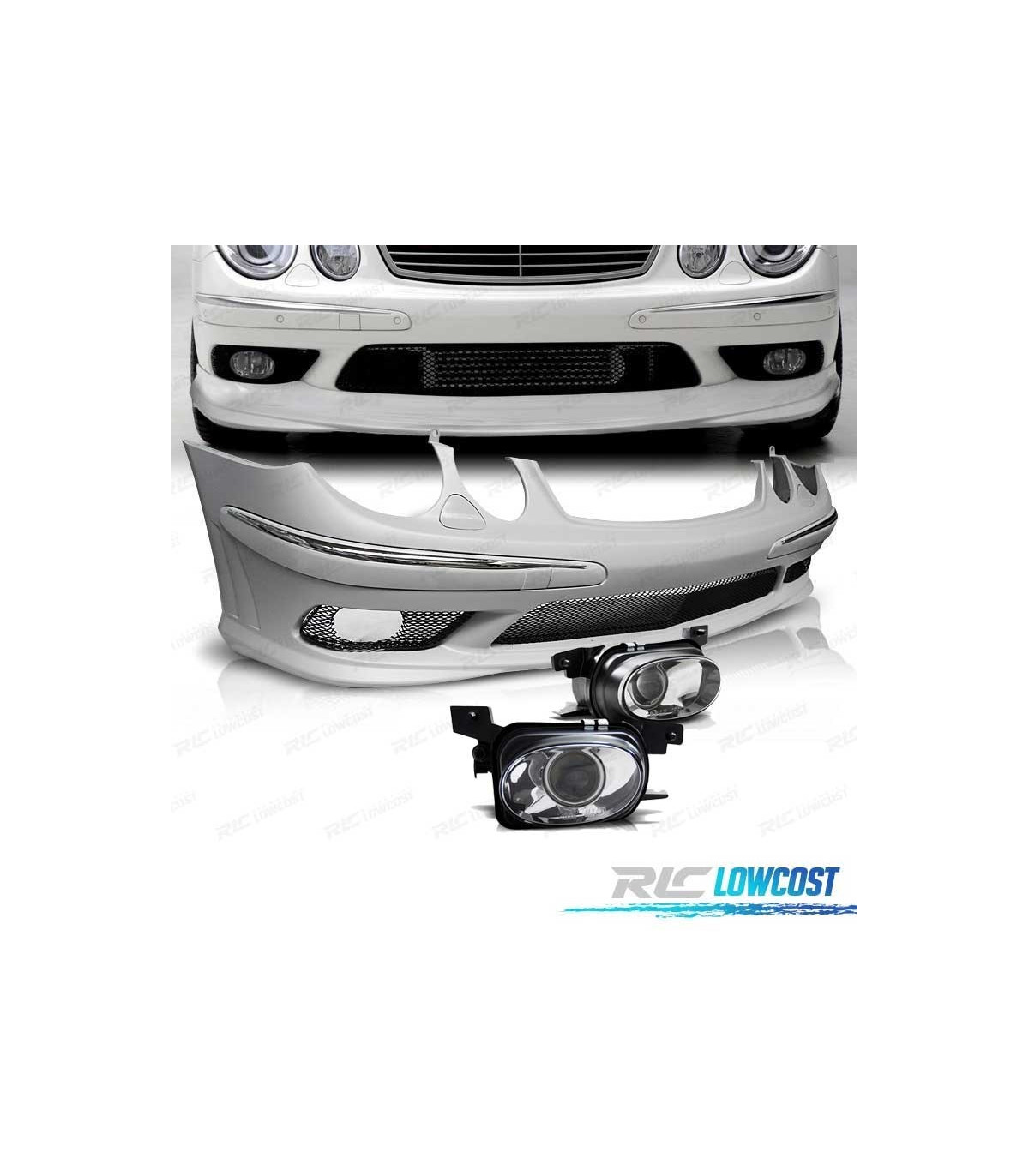 PARAGOLPES DELANTERO MERCEDES W211 02-06 LOOK AMG + NIEBLAS ABS