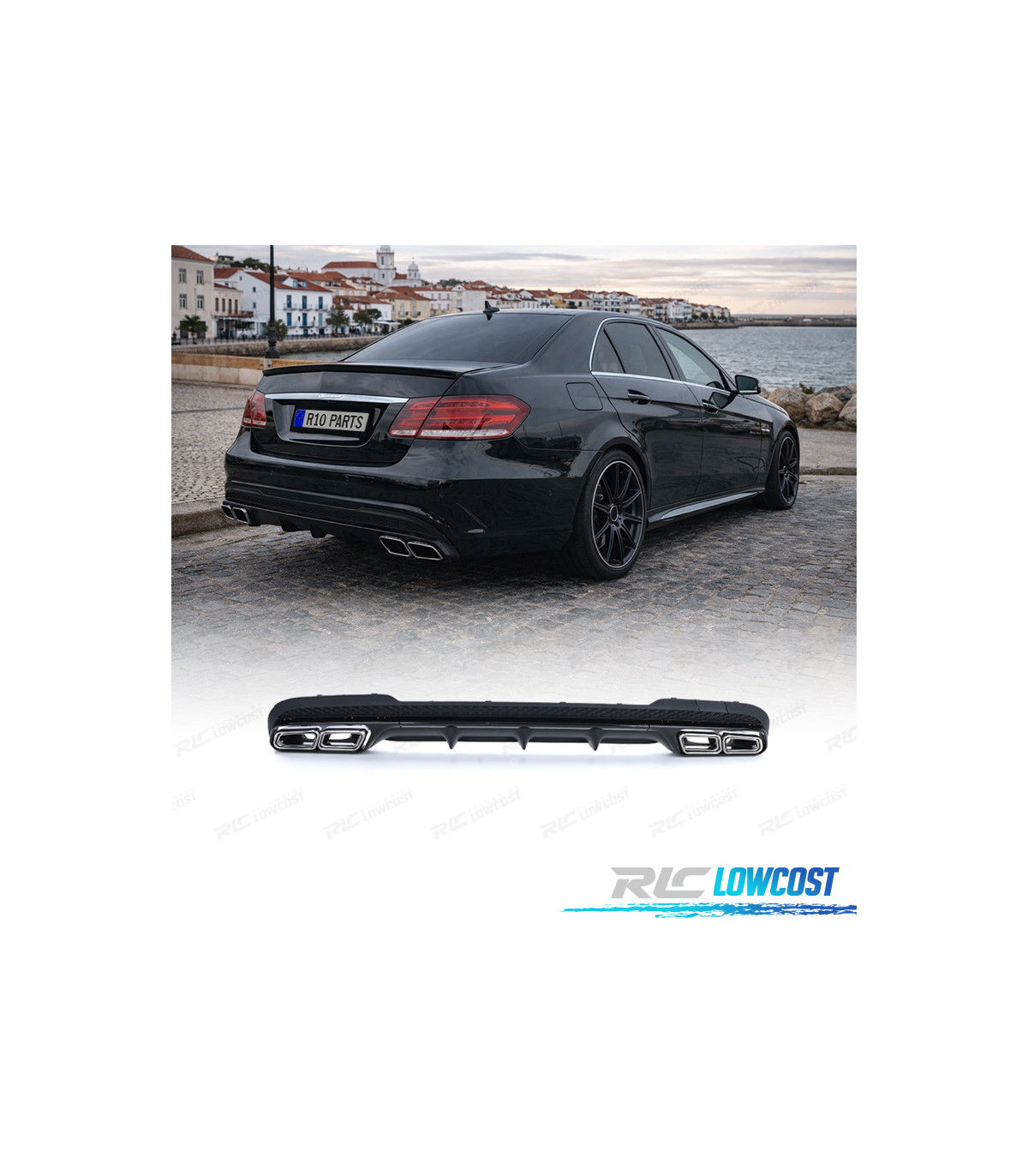 DIFUSOR MERCEDES CLASE E W212 SEDAN 13-16 LOOK AMG E63 + COLAS ESCAPE CROMADO