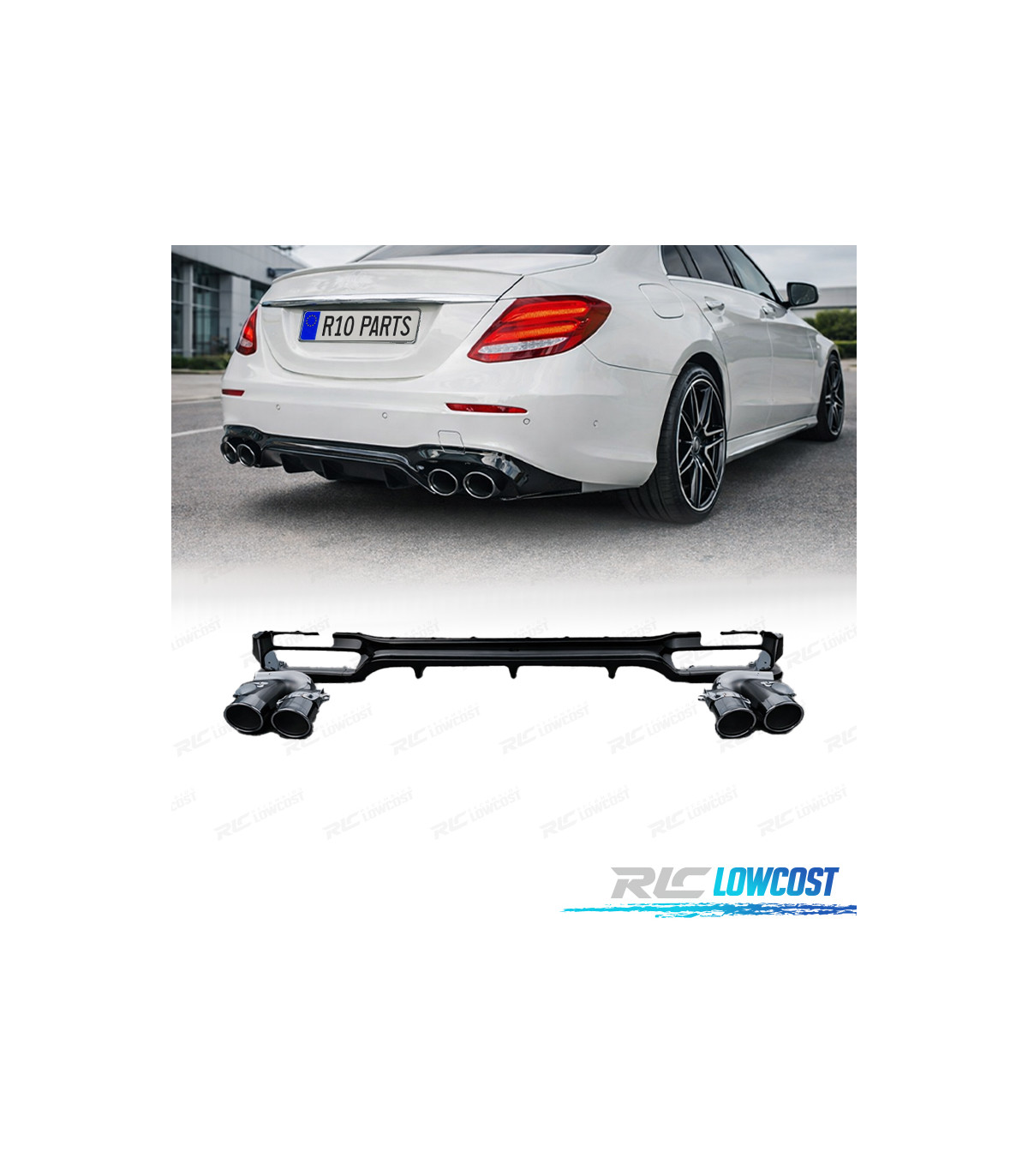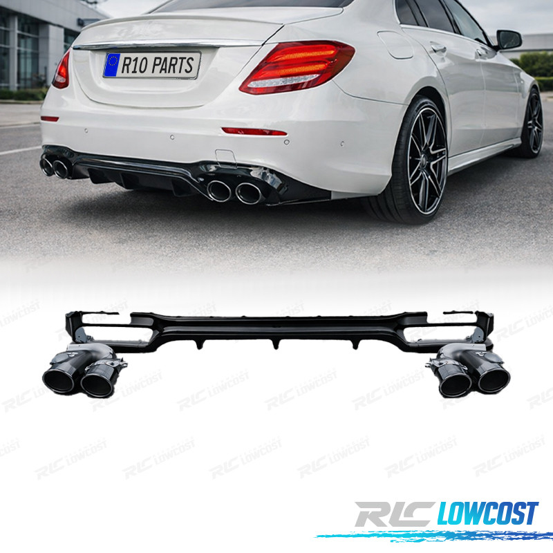 DIFUSOR MERCEDES CLASE E W213 SEDAN 16-19 LOOK AMG E53 NEGRO BRILLO + COLAS ESCAPE