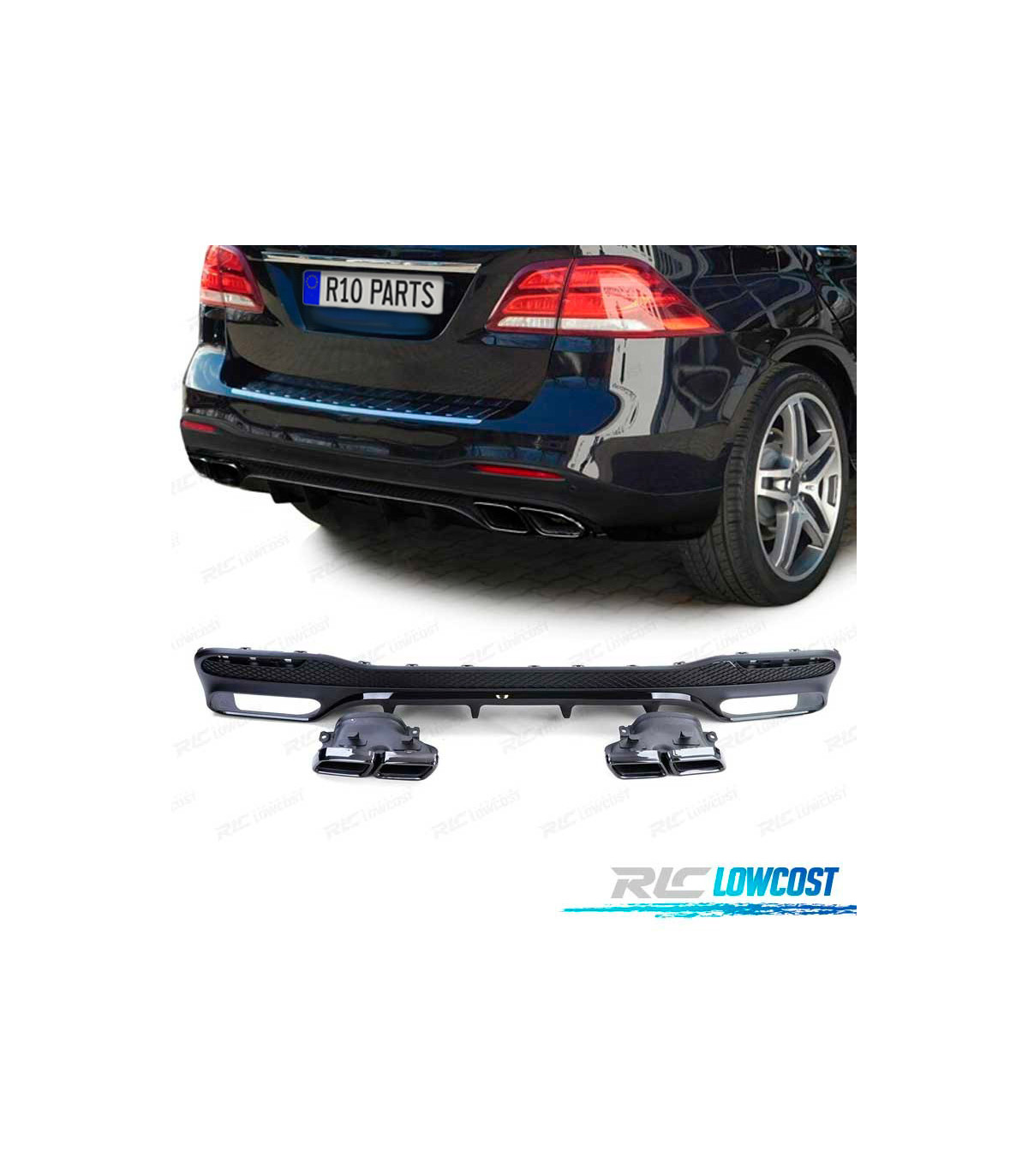 DIFUSOR MERCEDES GLE W166 15-19 LOOK AMG GLE63 NEGRO BRILLO + COLAS ESCAPE NEGRO