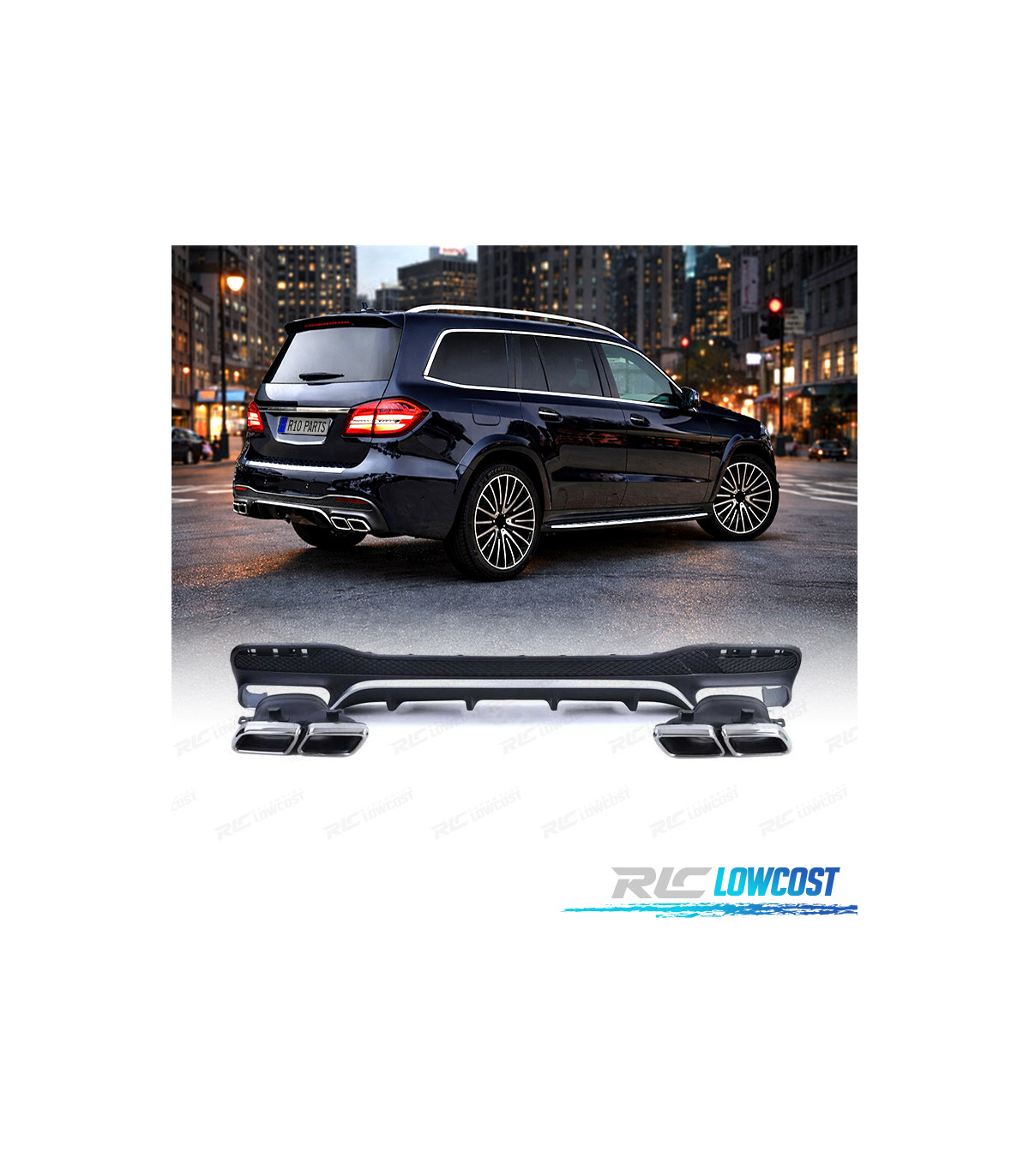 DIFUSOR MERCEDES GLS X166 15-19 LOOK AMG NEGRO MATE + COLAS ESCAPE ABS