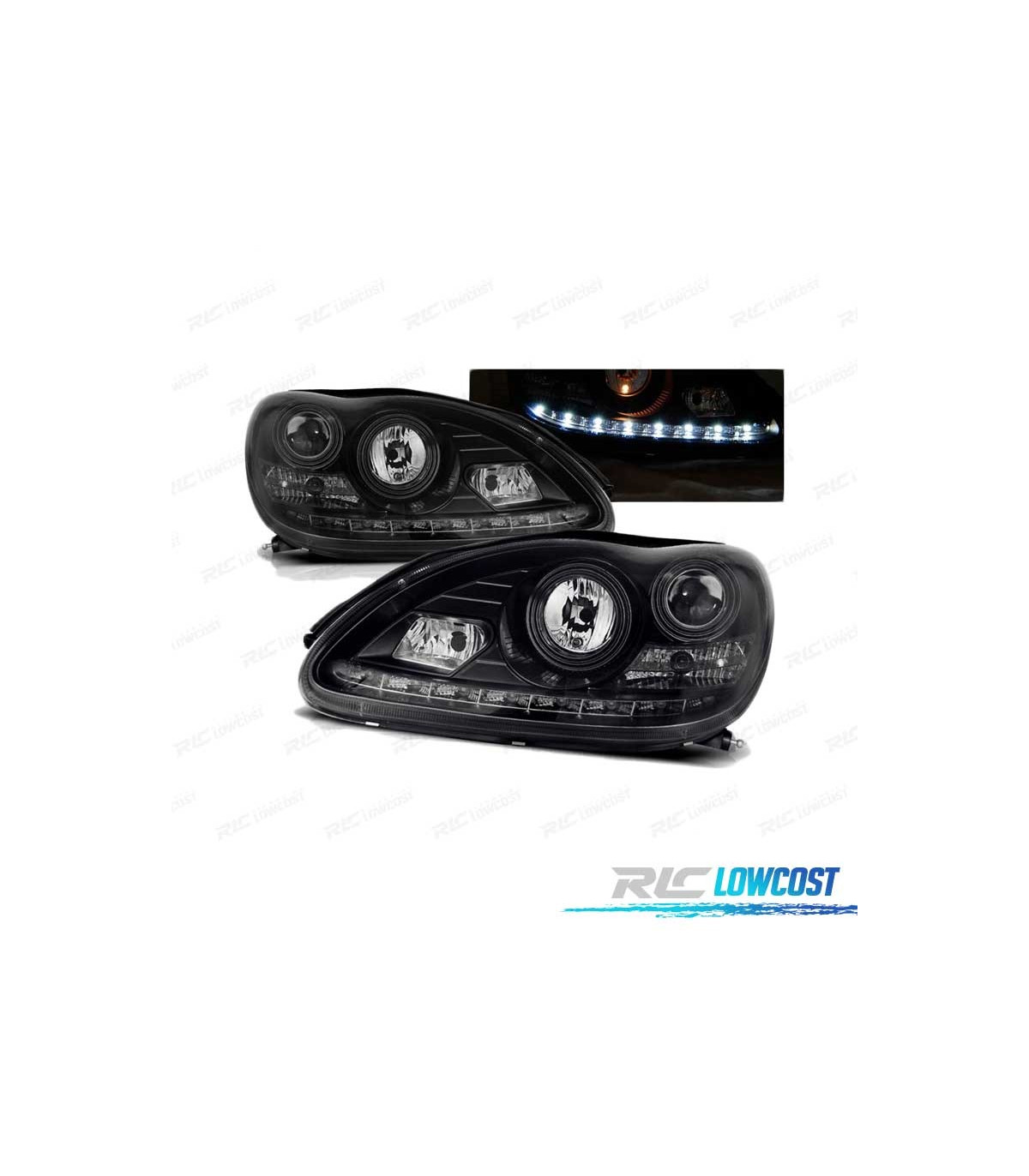 FAROS LUZ DIURNA MERCEDES W220 98-05 FONDO NEGRO