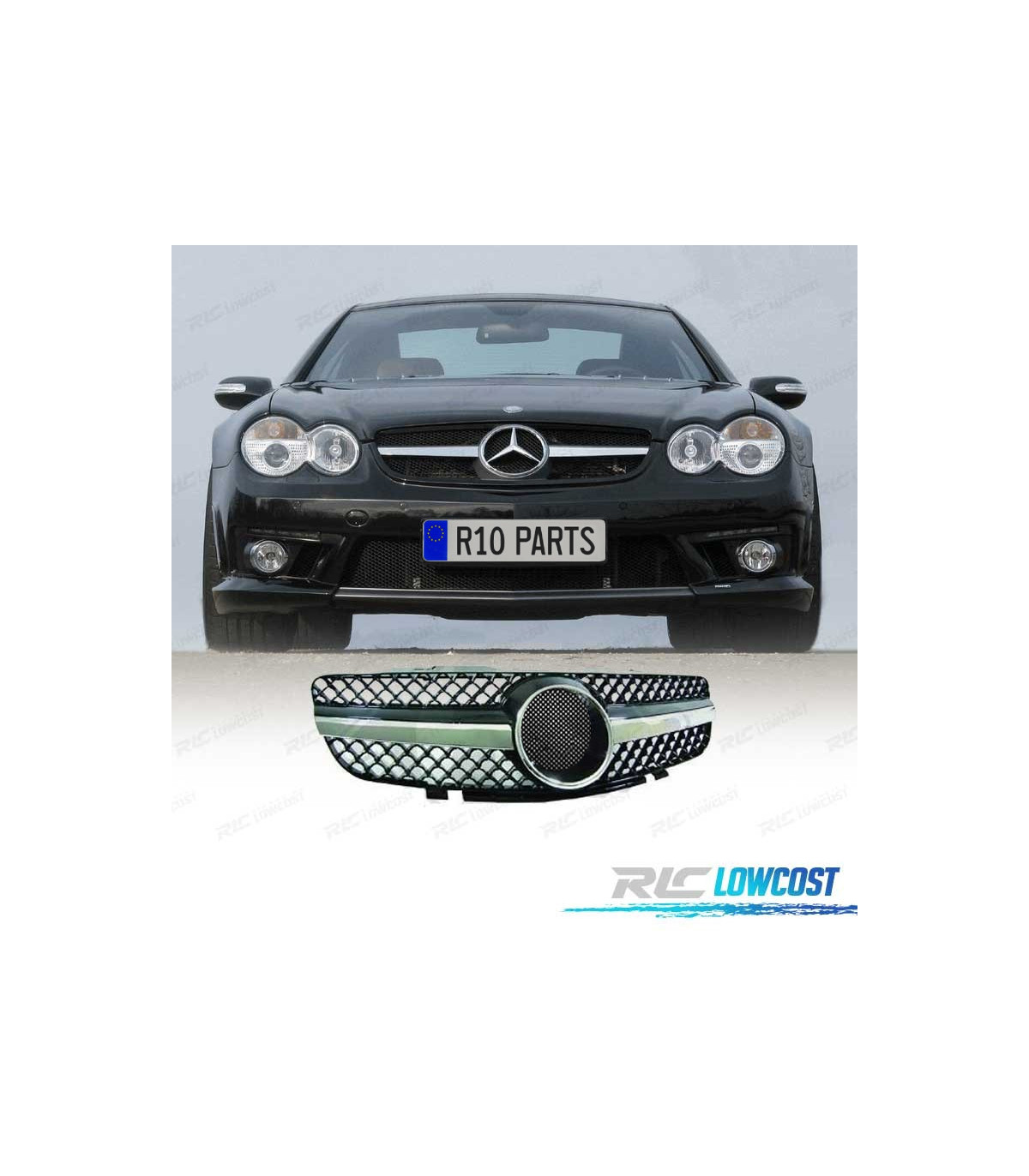 PARRILLA MERCEDES CLASE SL R230 01-08 LOOK SPORT AMG CROMADO NEGRO