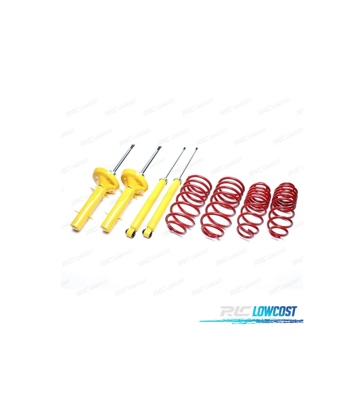 - El set esta compuesto por cuatro amortiguadores de vástago corto deportivos y cuatro muelles rebajados.