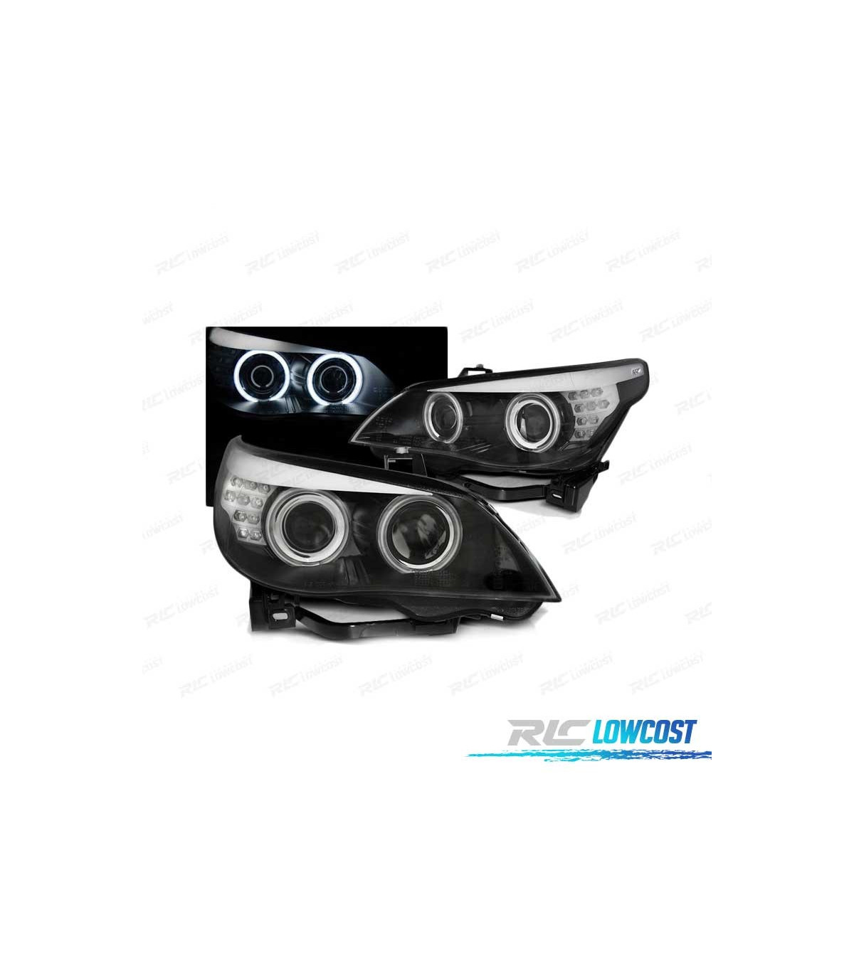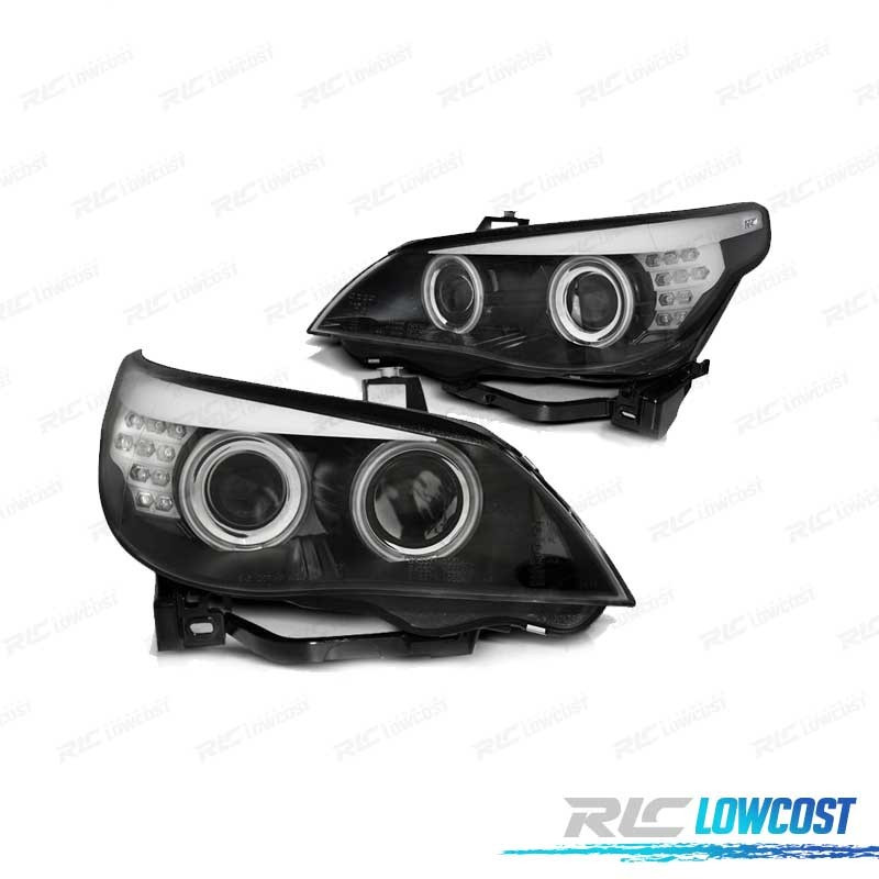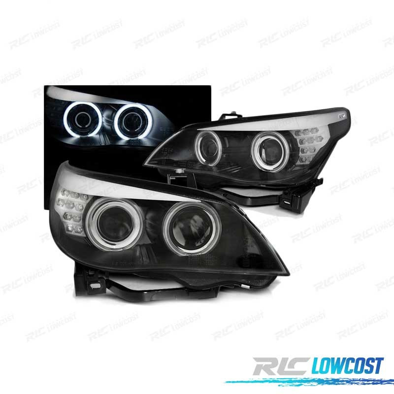 FAROS BMW E60 E61 03-07 OJOS ANGEL CCFL INTERMITENTE LED NEGROS