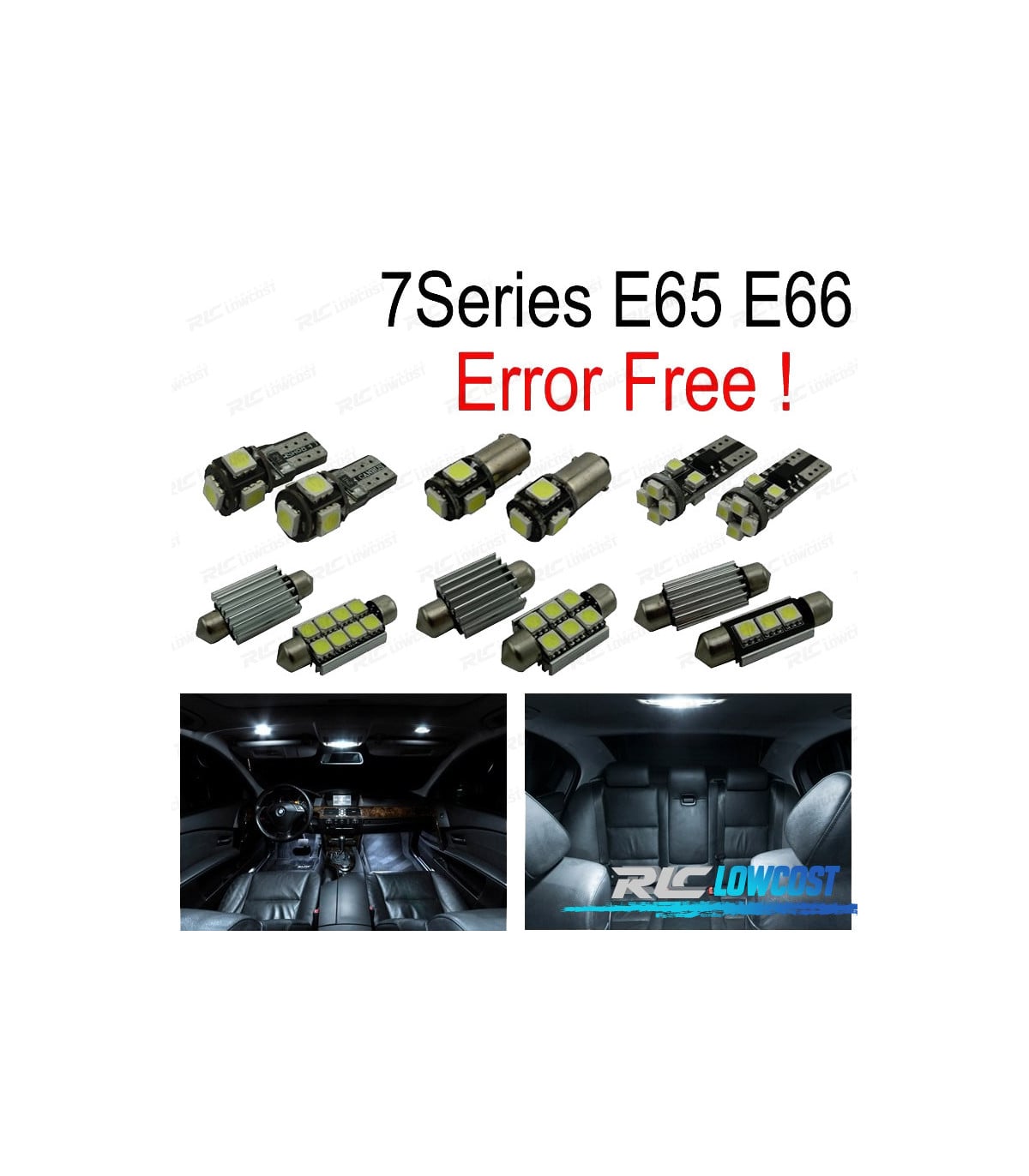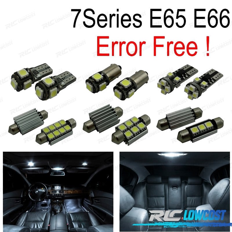 KIT 20 BOMBILLAS LED INTERIOR BMW 7 SERIE E65 E66 745LI 750LI 760LI 745I 750I 2002-2008Estos no son productos originales de la marca BMW.El artículo ofrecido, solo es compatible para los modelos de vehículos descritos.El paquete incluye:Bombillas cúpula frontal-3 unidadesBombillas Cúpula trasera-3 unidadesBombillas parasol-4 unidadesBombillas plafón central-2 unidadesBombillas guantera-1 unidadesBombillas puertas-4 unidadesBombillas reposapiés-2 unidadesBombillas reserva extra-1 unidades(Cada bombilla está empaquetada y etiquetada por separado, usted sabrá donde colocar cada bombilla)