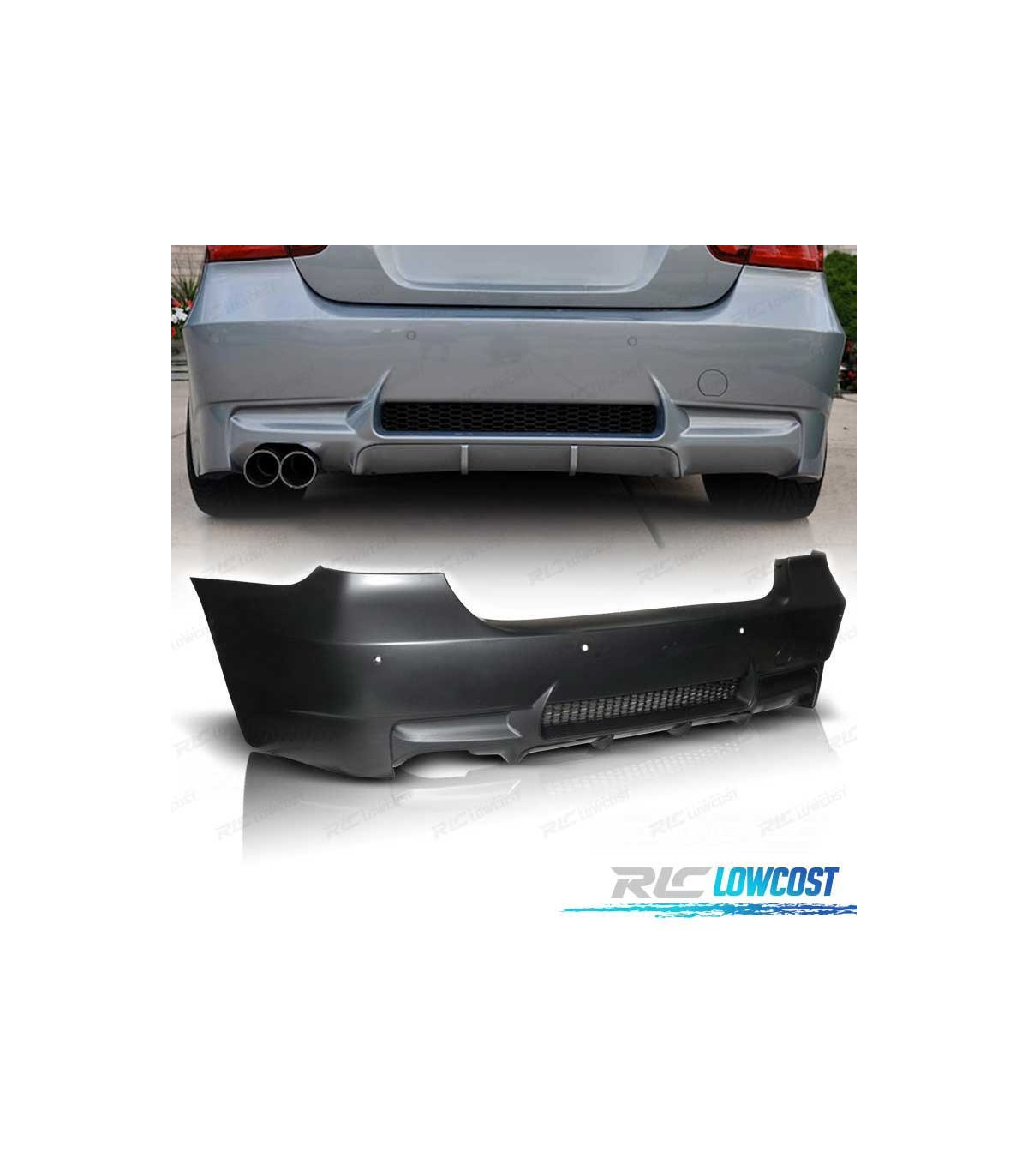 PARAGOLPES TRASERO BMW E90 LOOK M3 PDC SALIDA DOBLE IZQ