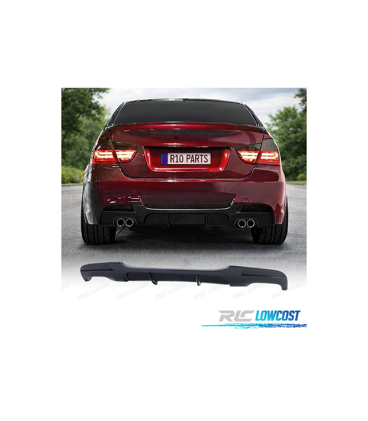 DIFUSOR BMW E90 E91 LOOK M PERFORMANCE NEGRO BRILLO SALIDA DOBLE
