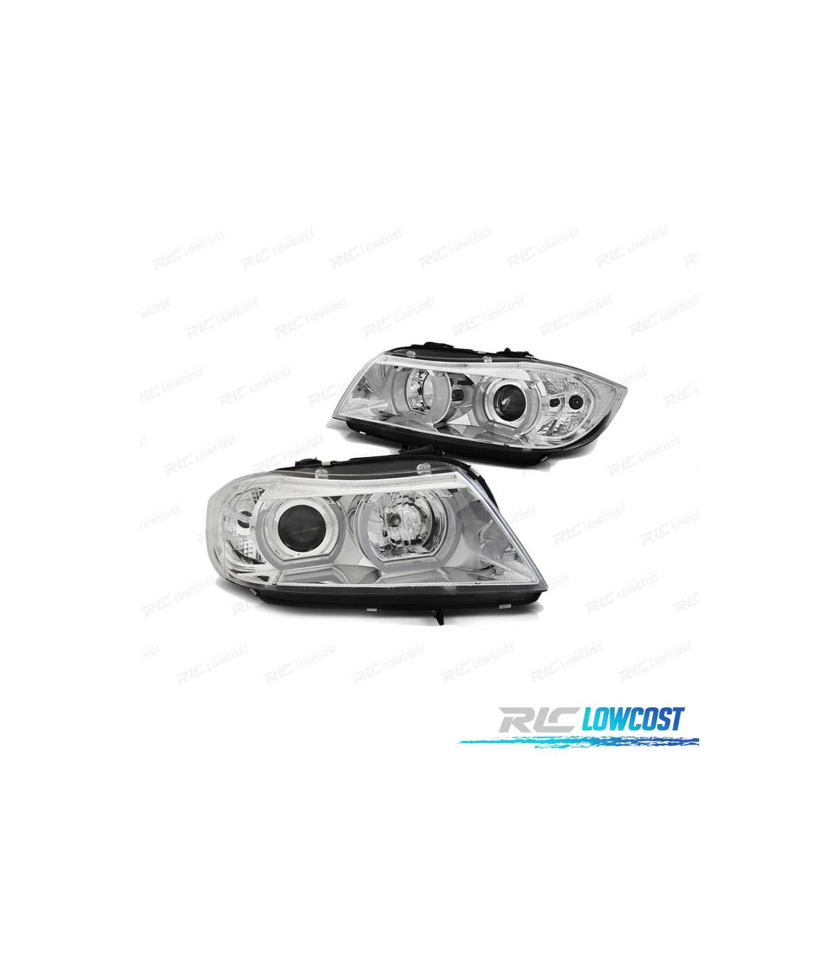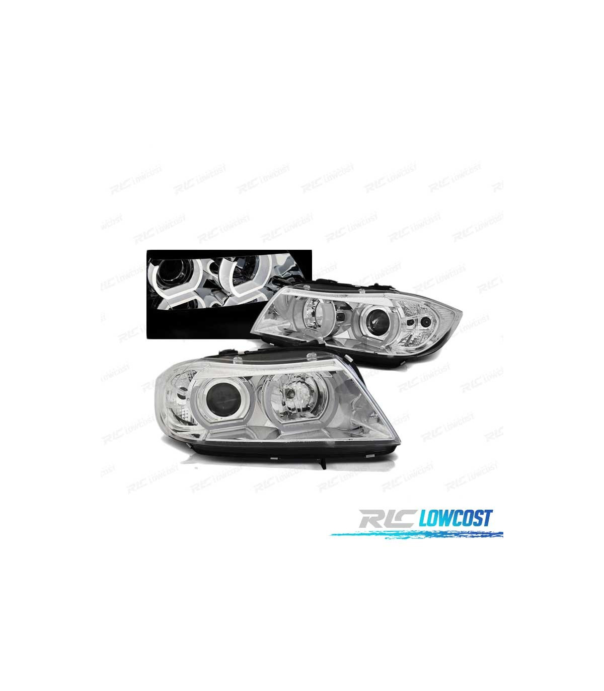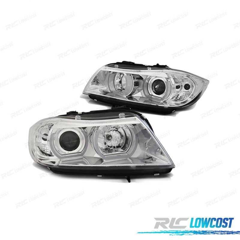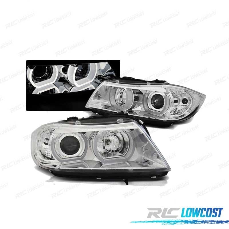 FAROS BMW E90 E91 05-08 OJOS ANGEL 3D U-TYPE CROMADOS