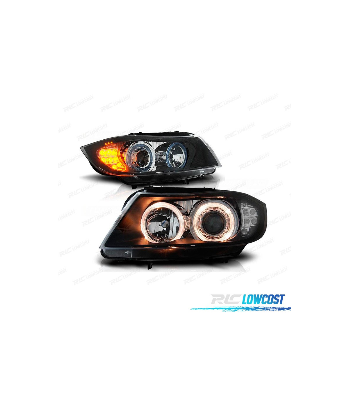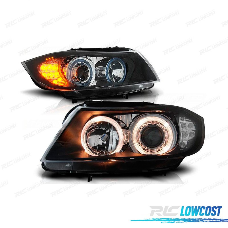 FAROS BMW E90 91 05-08 OJOS ANGEL HALOGENO + LED FONDO NEGRO