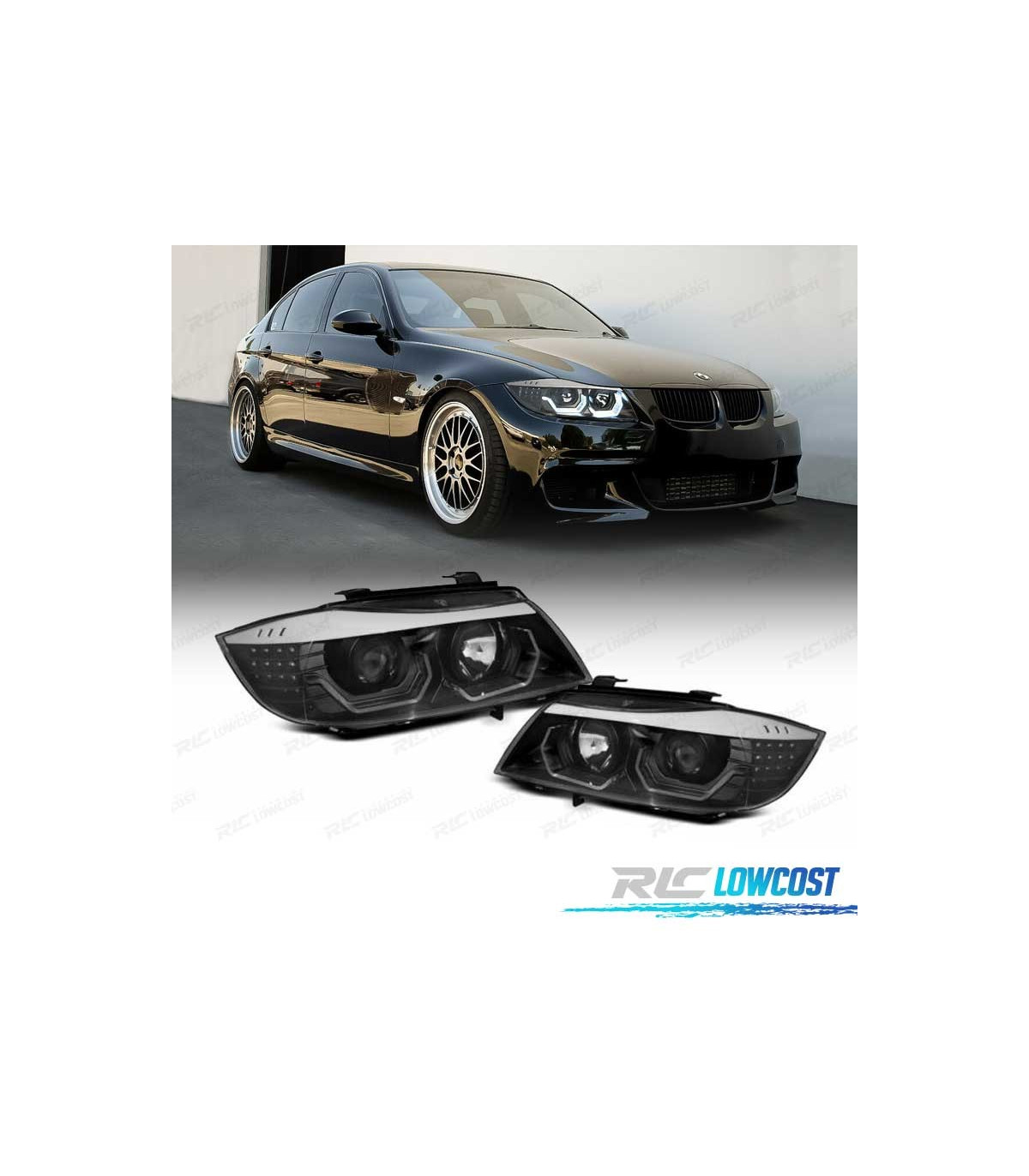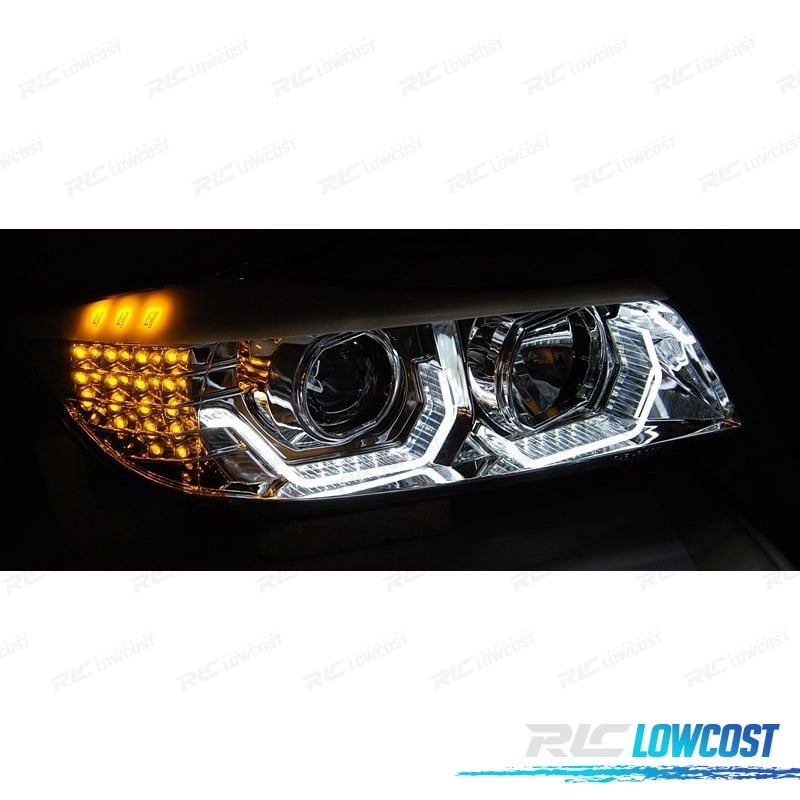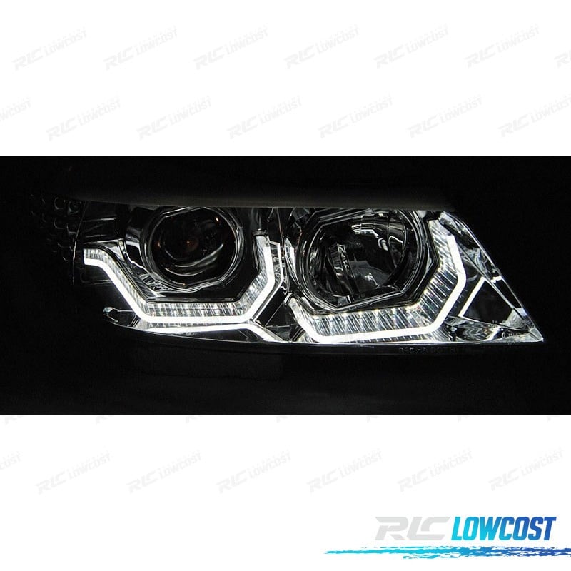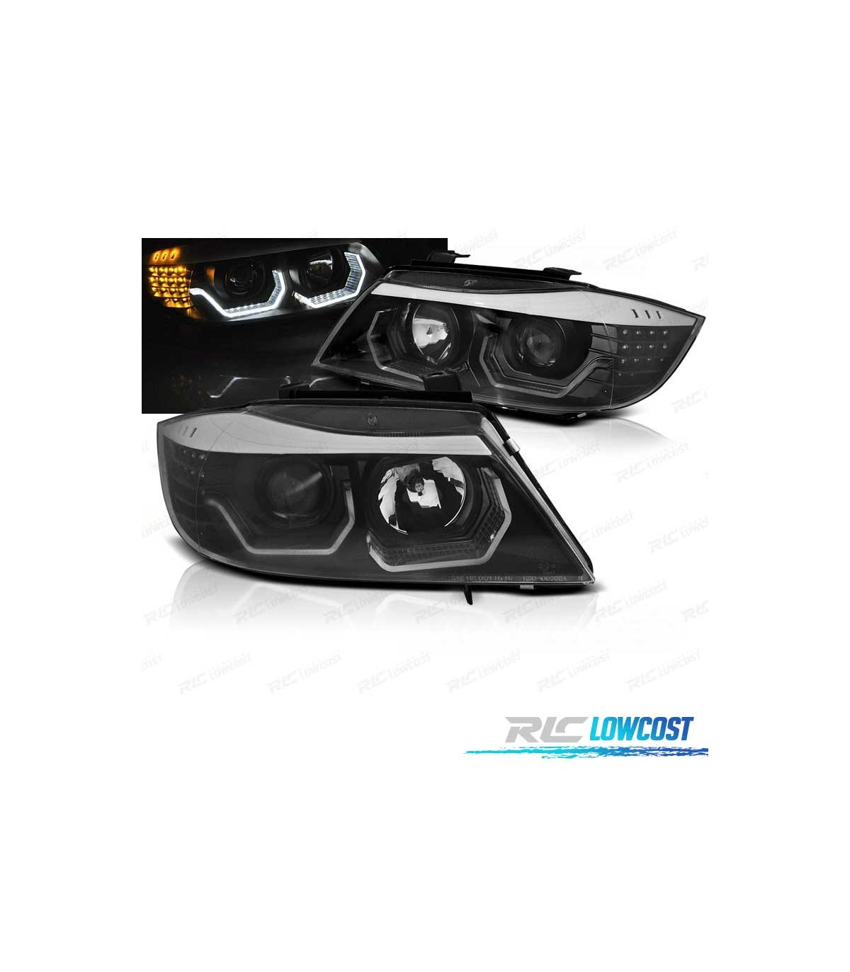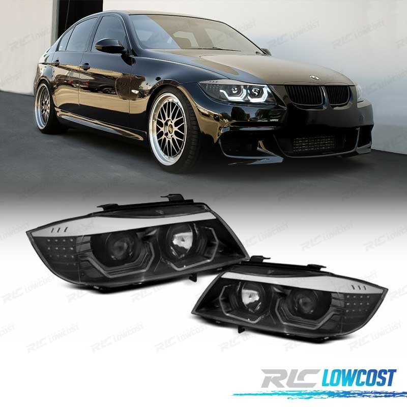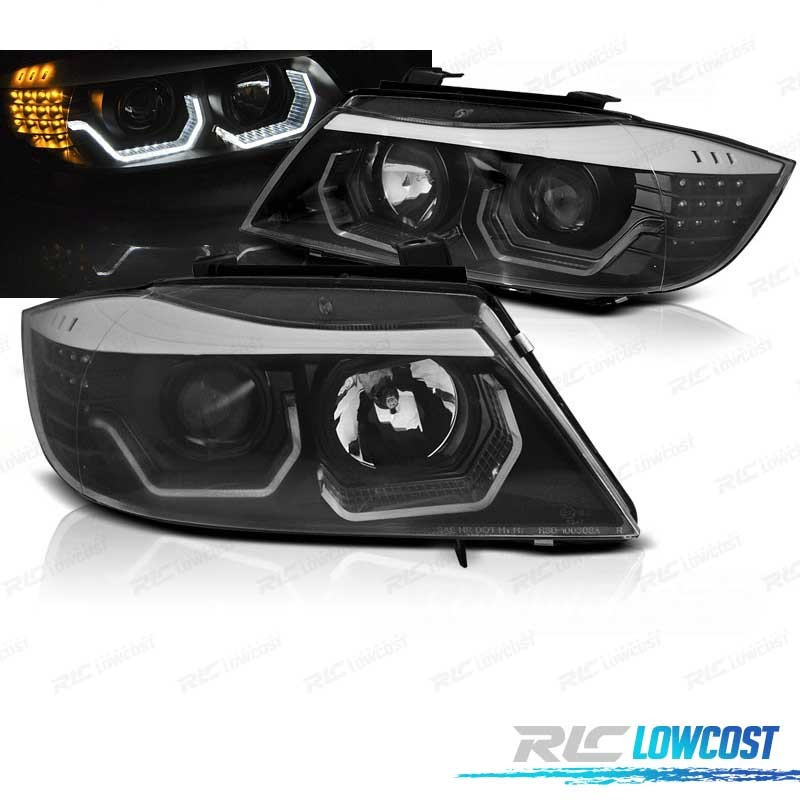 FAROS BMW E90 E91 05-08 OJOS ANGEL 3D FONDO NEGRO INTERMITENTE LED
