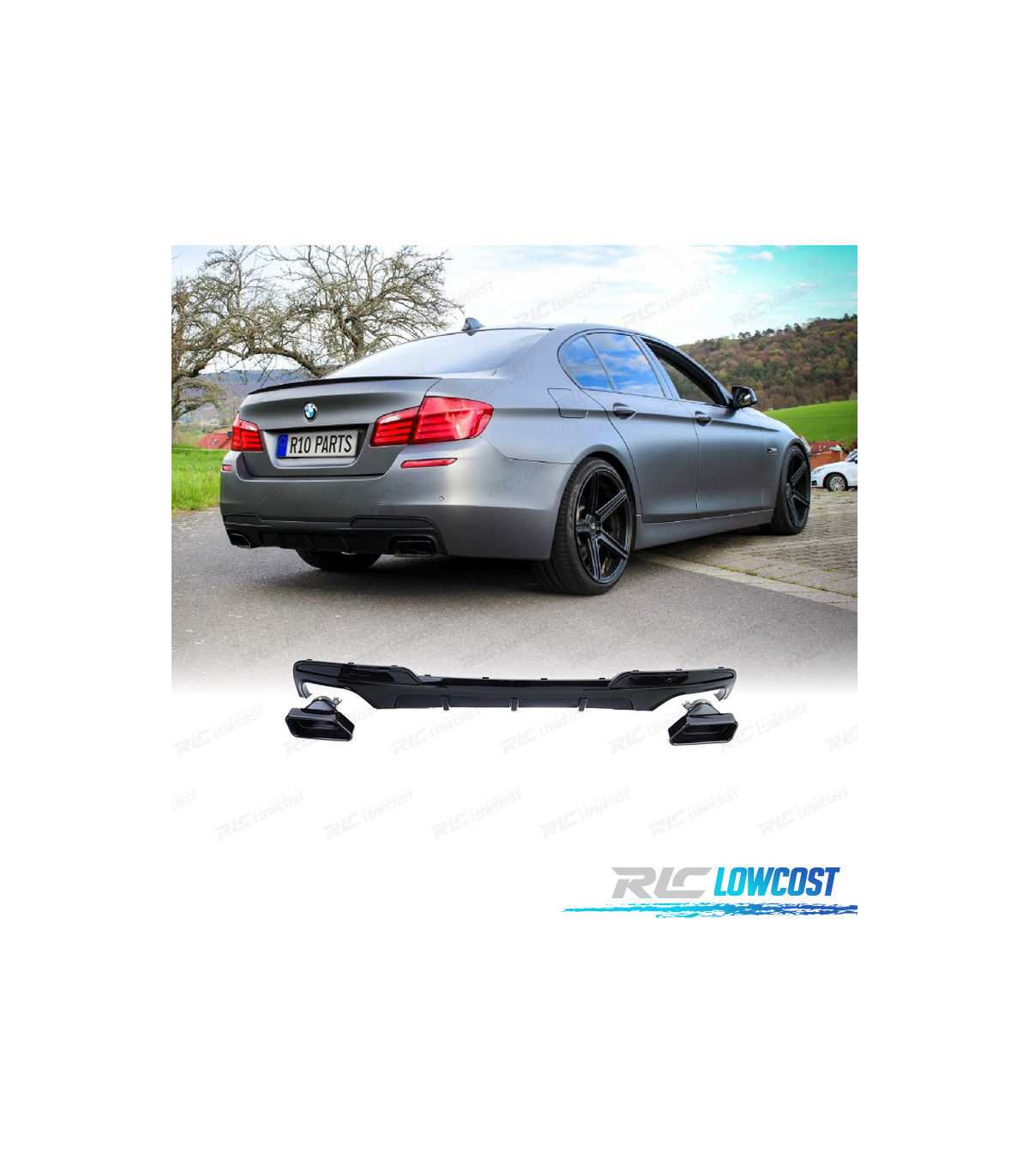 DIFUSOR BMW F10 F11 10-17 LOOK M PERFORMANCE NEGRO BRILLO + COLAS DE ESCAPE NEGRO ABS