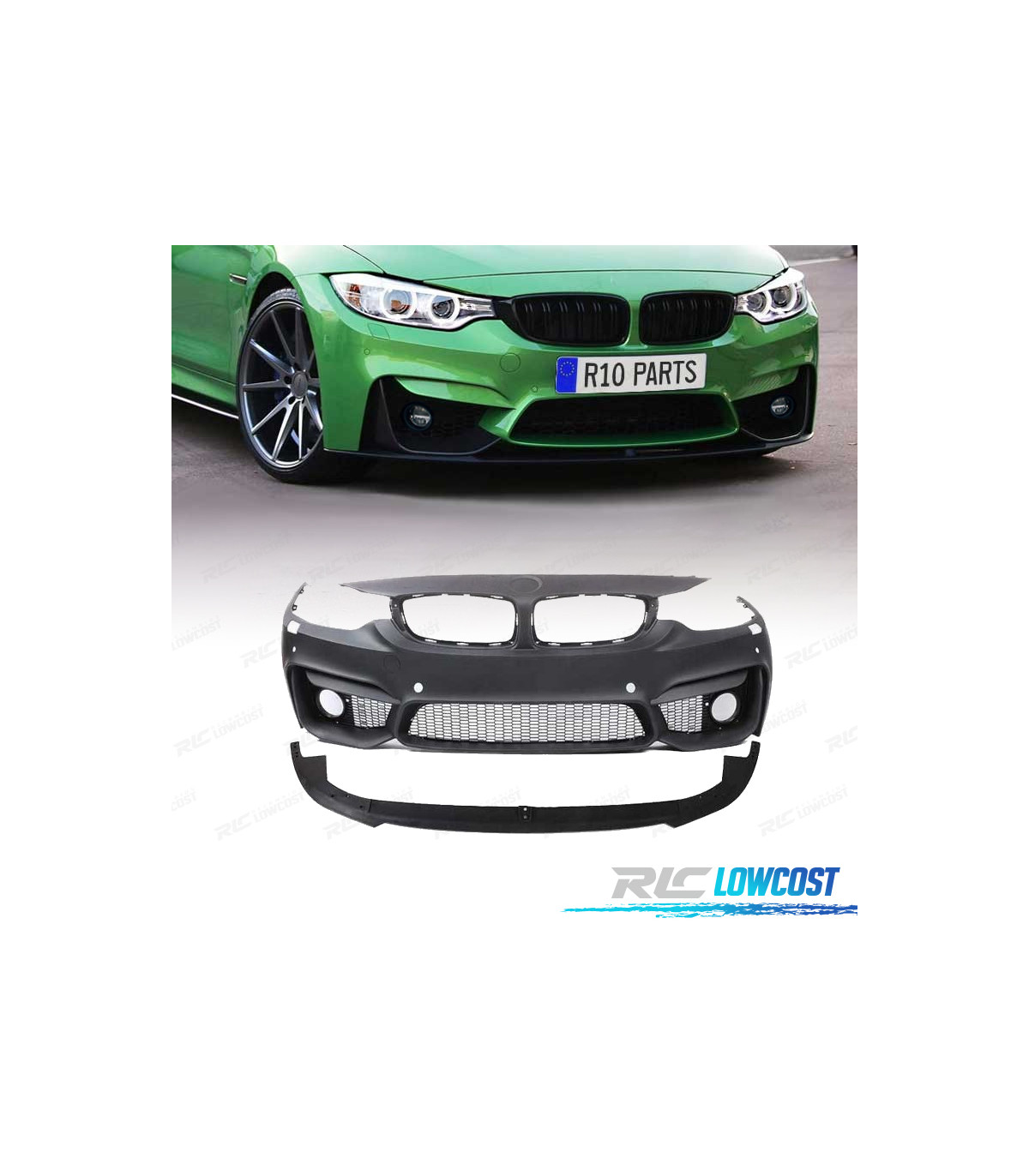 PARAGOLPES DELANTERO BMW F32 F33 F36 LOOK M4 SRA PDC REJILLAS NIEBLA + SPOILER LIP