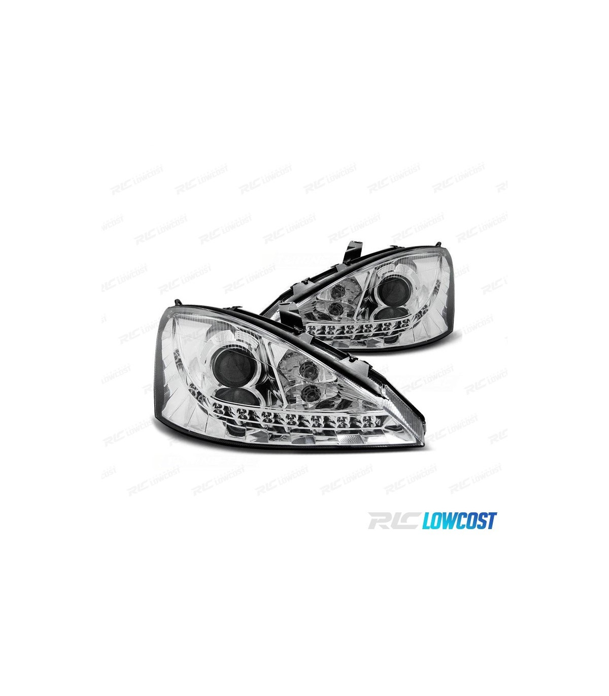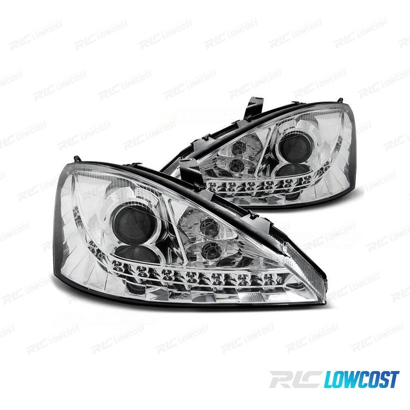 FAROS FORD FOCUS 01-04 LUZ DIURNA LED FONDO CROMO