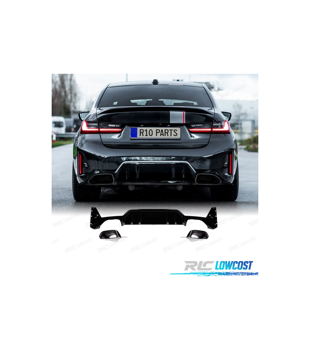 DIFUSOR BMW G20 G21 LCI 23-25 LOOK M 340i NEGRO BRILLO + COLAS ESCAPE