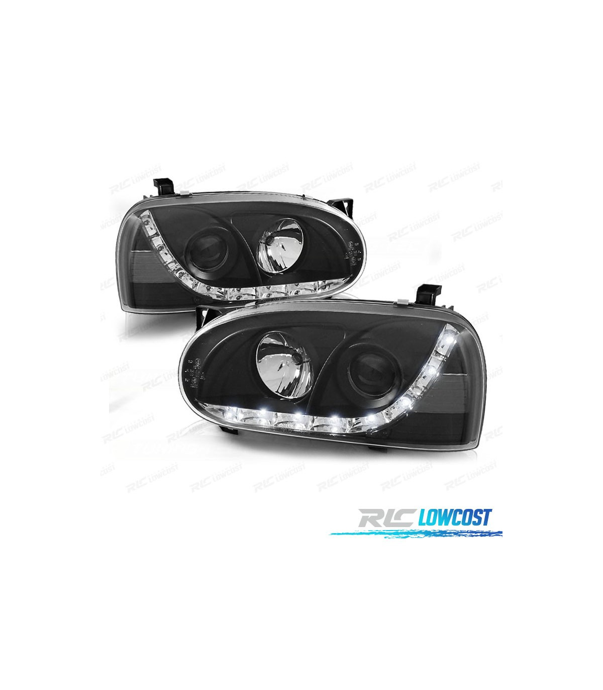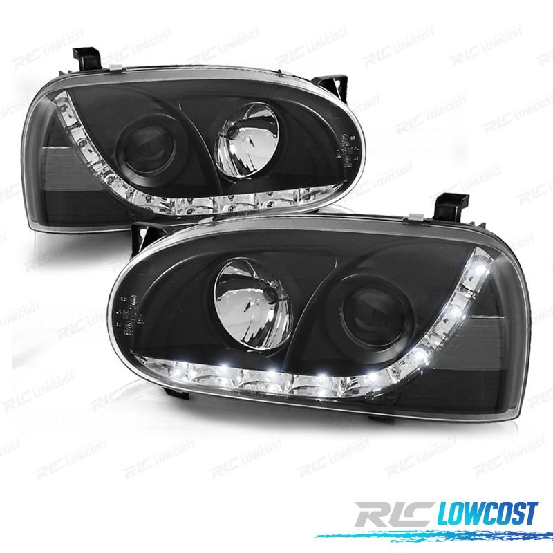 FAROS VOLKSWAGEN VW GOLF 3 LUZ DIURNA LED FONDO NEGRO