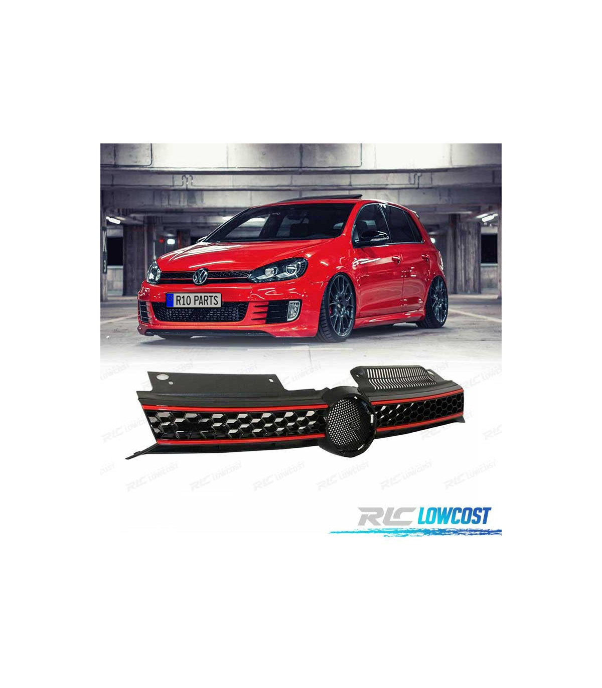 PARRILLA VOLKSWAGEN VW GOLF 6 08-12 LOOK GTI NEGRO MOLDURA ROJA
