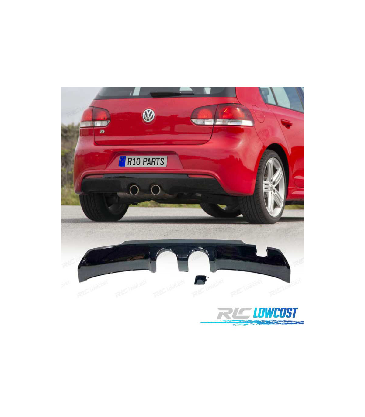 DIFUSOR VOLKSWAGEN VW GOLF 6 LOOK R20 NEGRO BRILLO