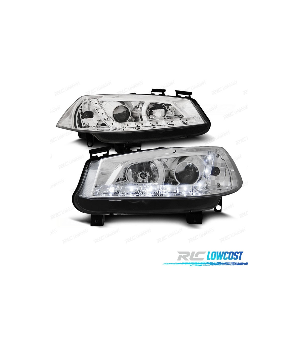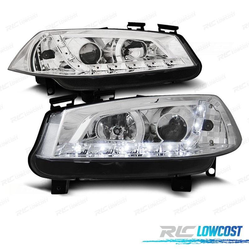FAROS RENAULT MEGANE 02-05 LUZ DIURNA LED FONDO CROMO