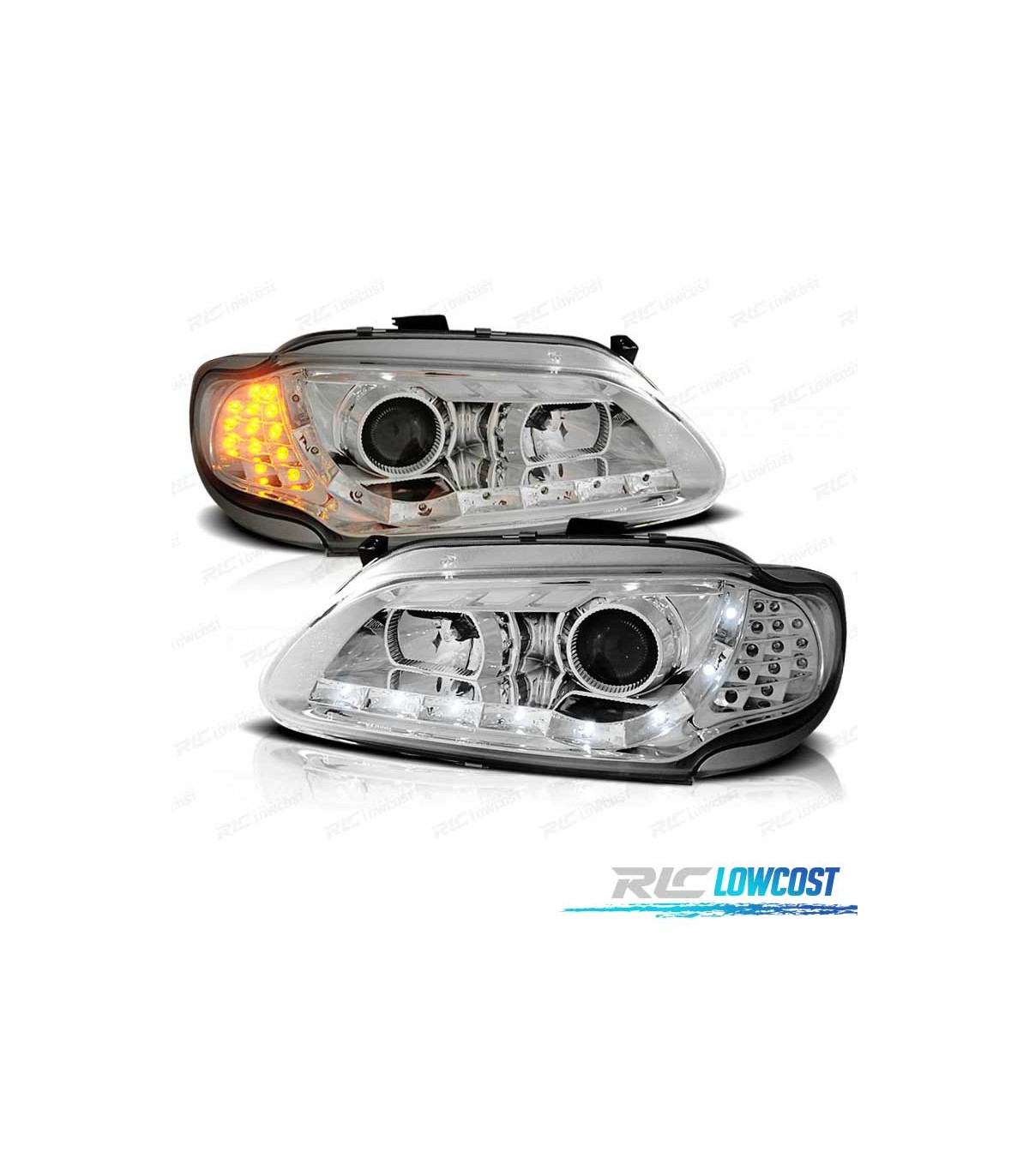 FAROS RENAULT MEGANE SCENIC 96-99 LUZ DIURNA LED CROMADOS