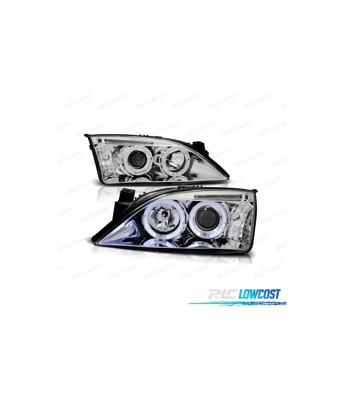 FAROS FORD MONDEO MK3 00-07 OJOS ANGEL FONDO CROMO