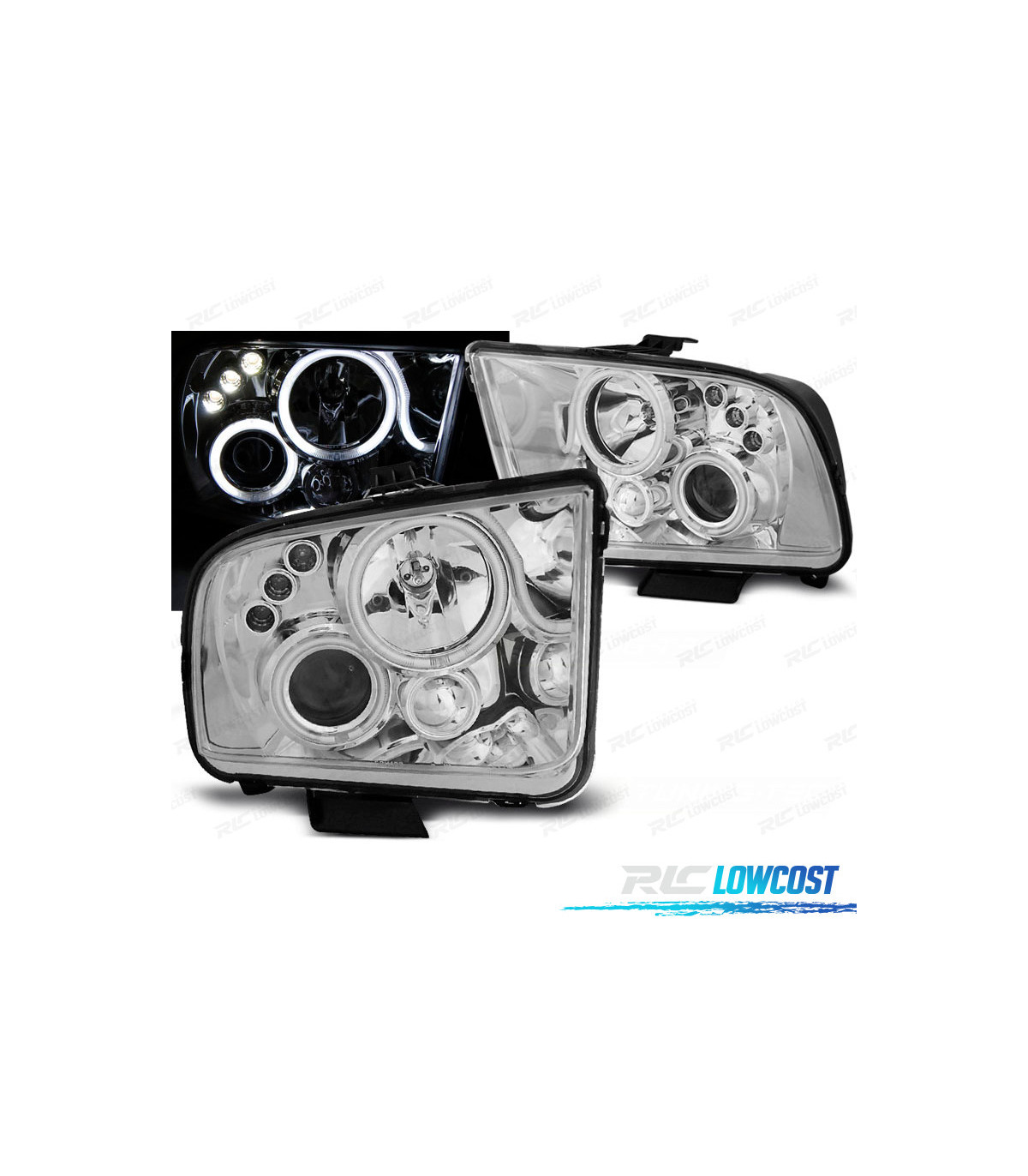 FAROS FORD MUSTANG 04-09 OJOS ANGEL LED CROMADOS