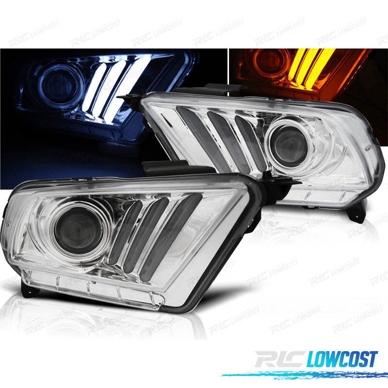FAROS FORD MUSTANG 10-14 LED DINÁMICOS CROMADOS