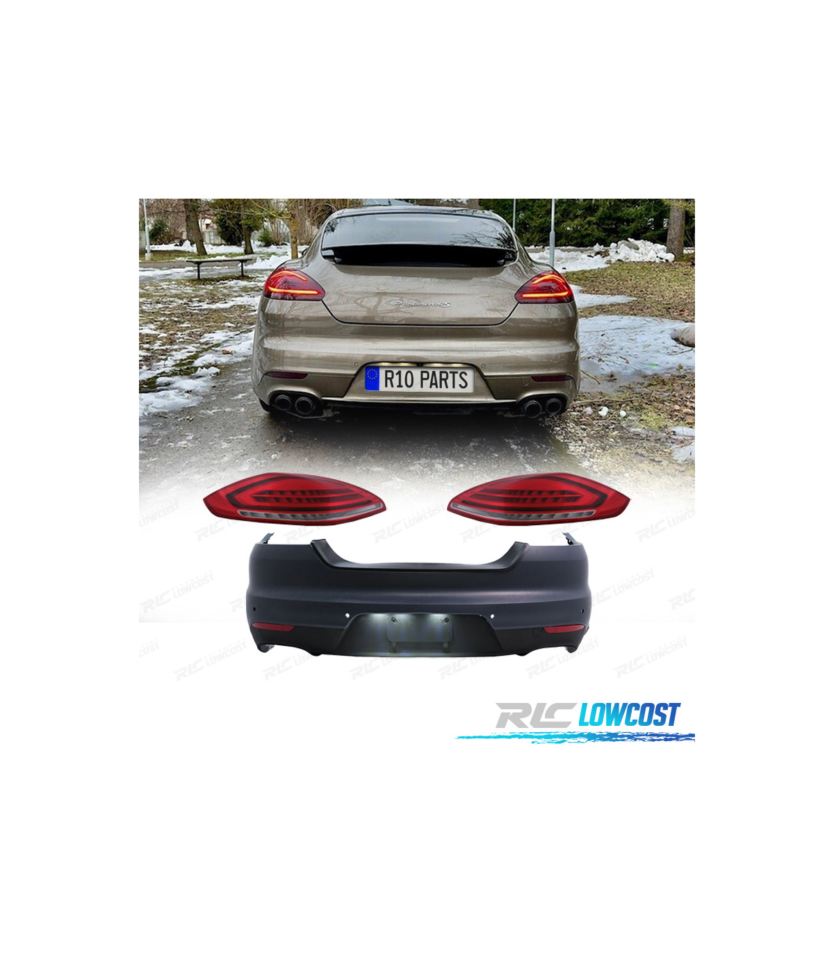 PARAGOLPES TRASERO PORSCHE PANAMERA 09-13 LOOK TURBO 971 + PILOTOS LED